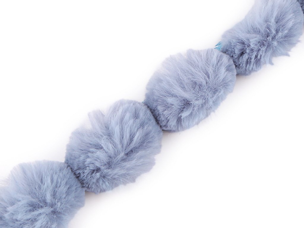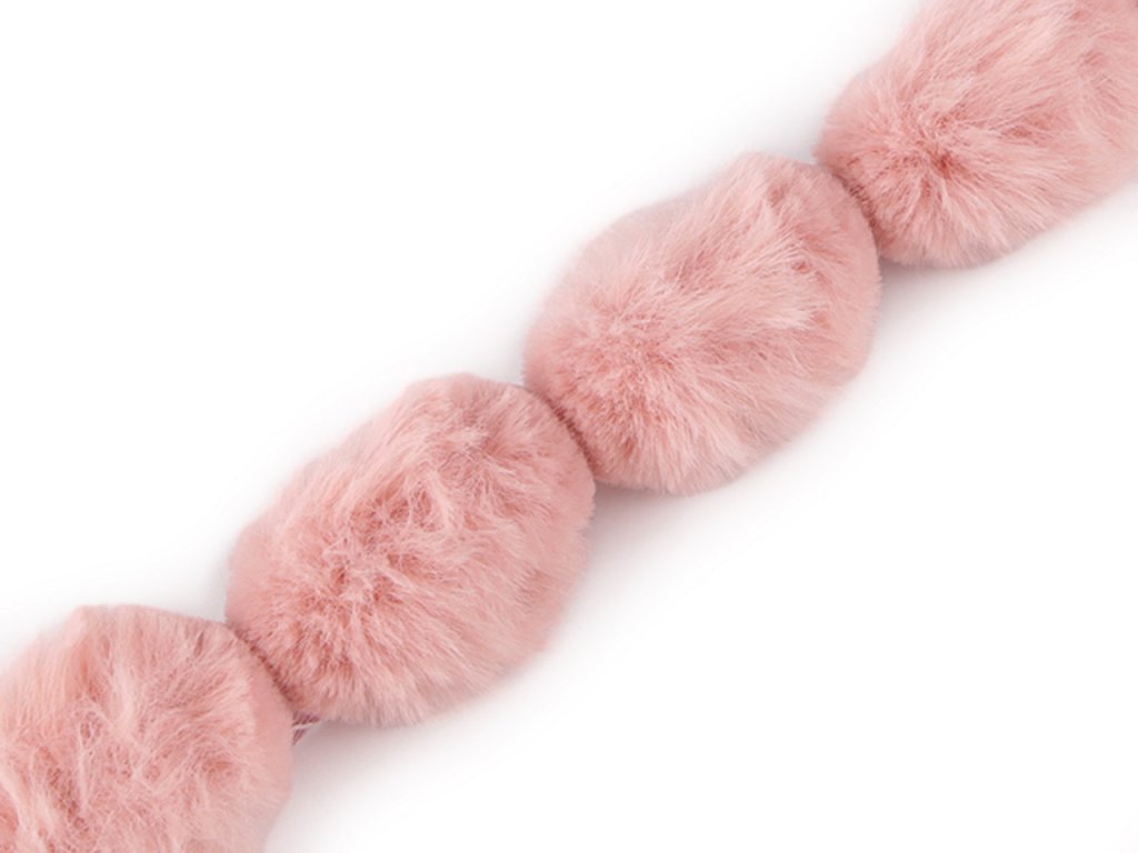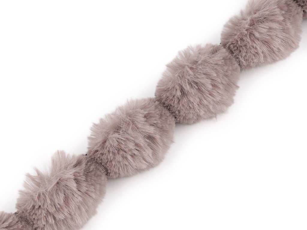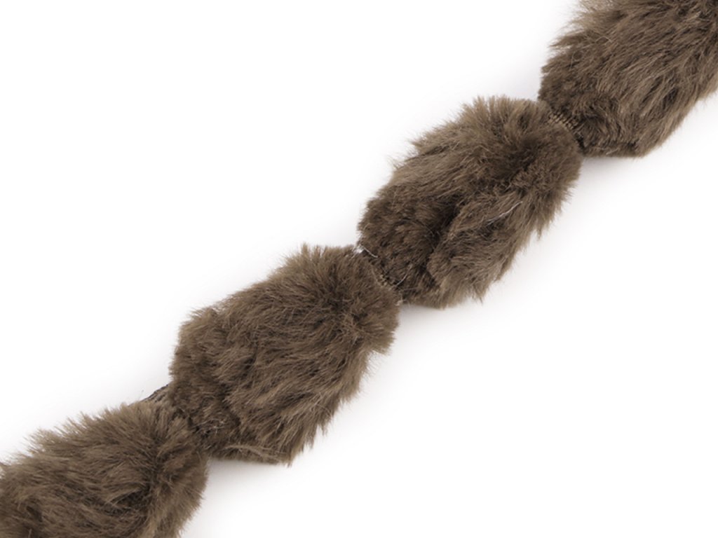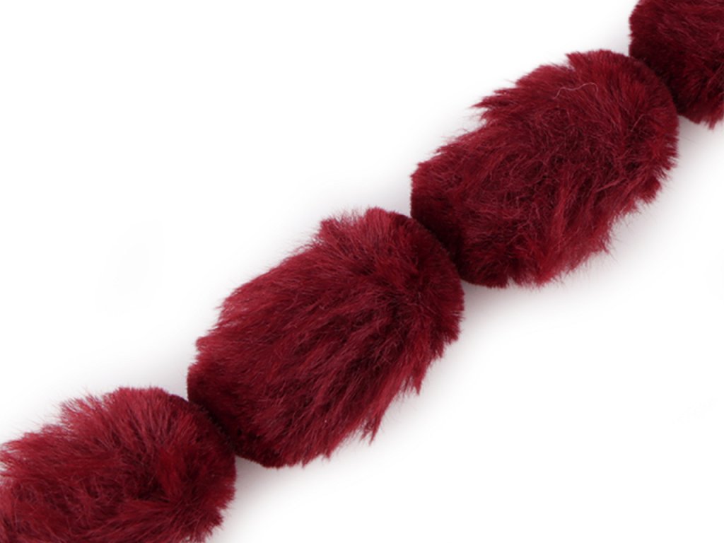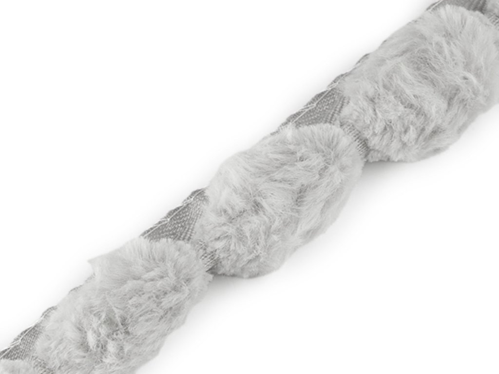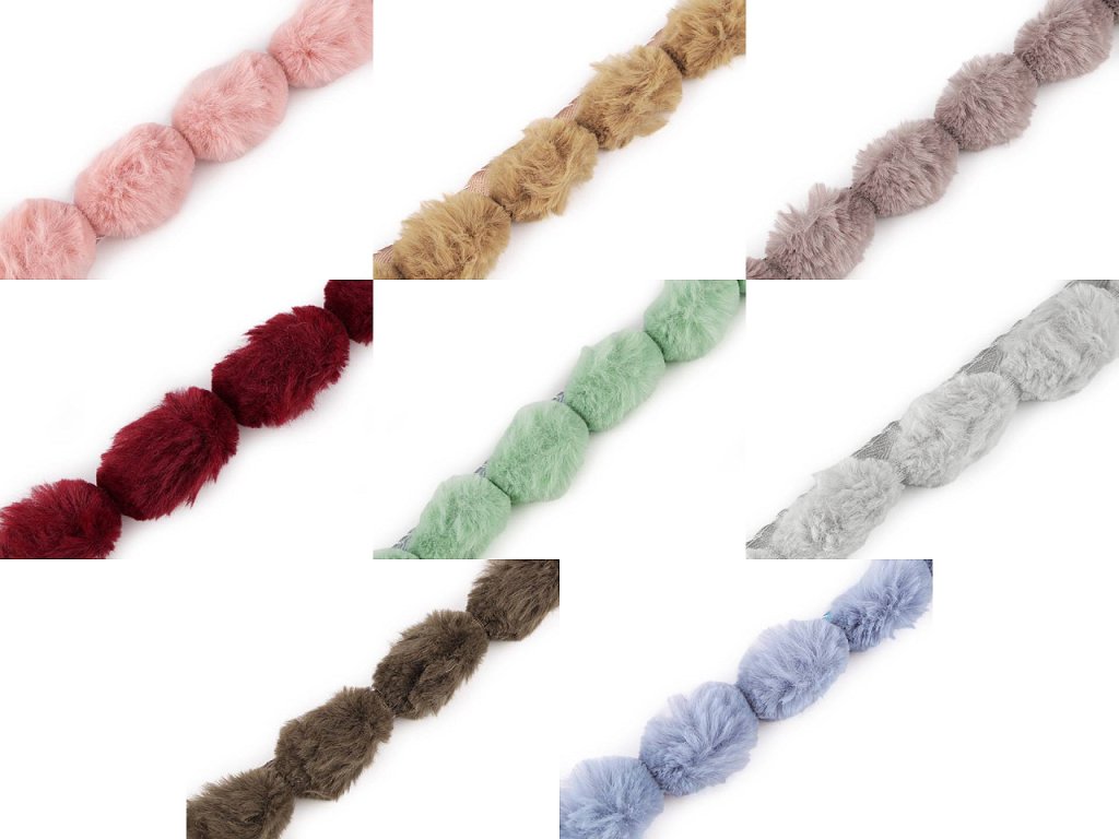 Všívací lemovka s kožešinovými bambulkami vás okouzlí svým jedinečným hravým vzhledem. Bambulky jsou navíc velice příjemné a hebké na dotek. Na boku má lemovka textilní pruh široký 1,2 cm, který slouží do všití lemů či švů. Bambulka je velká přibližně 3 x 3,5 cm.