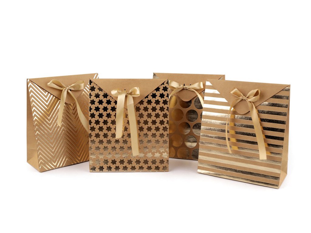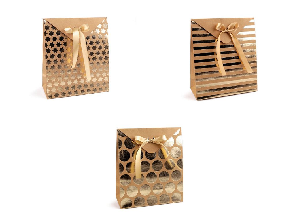 Dárková krabička s poutavým metalickým potiskem je vhodná na zabalení menších dárků. Potěší každého obdarovaného, nahoře se zavazuje saténovou stuhou, která je součástí balení. Potisk je na přední i zadní straně.