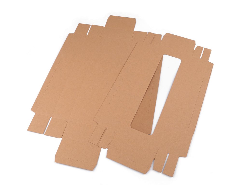 Krabici dodáváme v rozloženém stavu (horní víko - 23,5 x 43,5 cm, spodní část krabice - 31 x 51 cm). Složíte si ji jednoduše podle vyznačených ohýbacích krajů. Rozměr průhledu je 5,5 x 25,5 cm.
