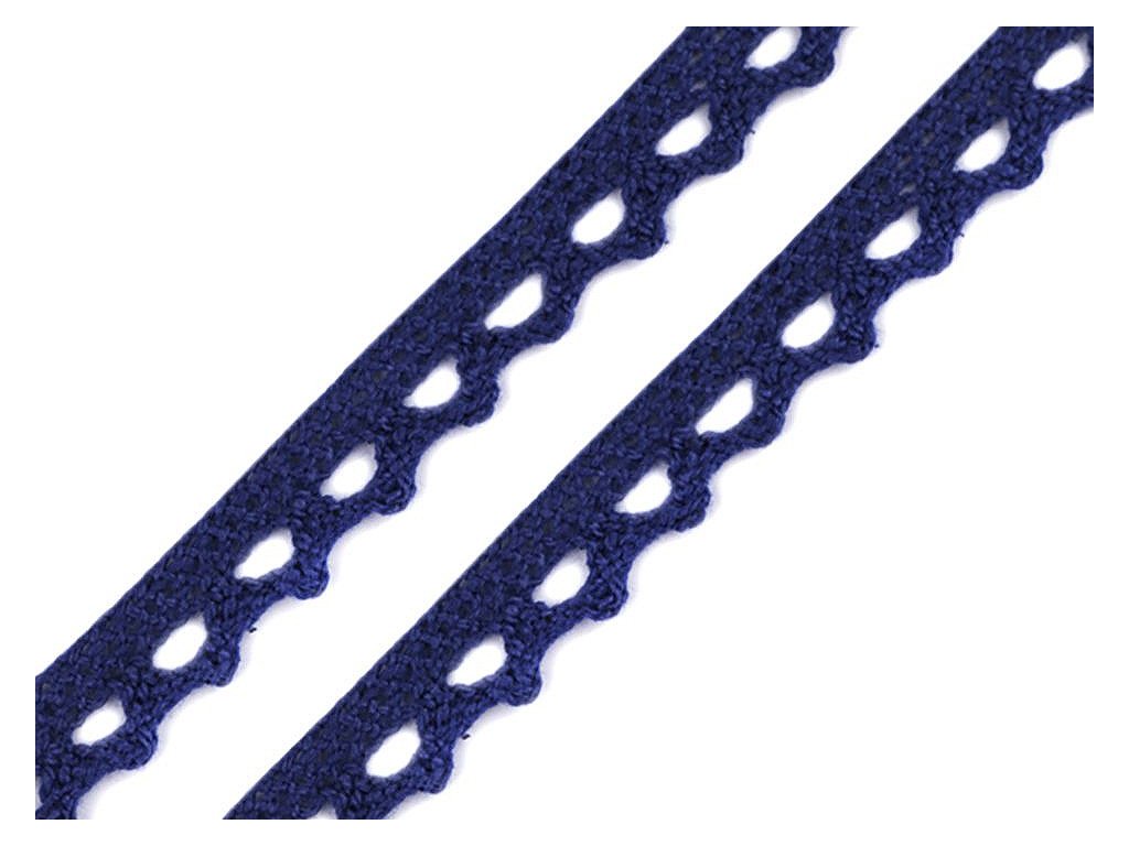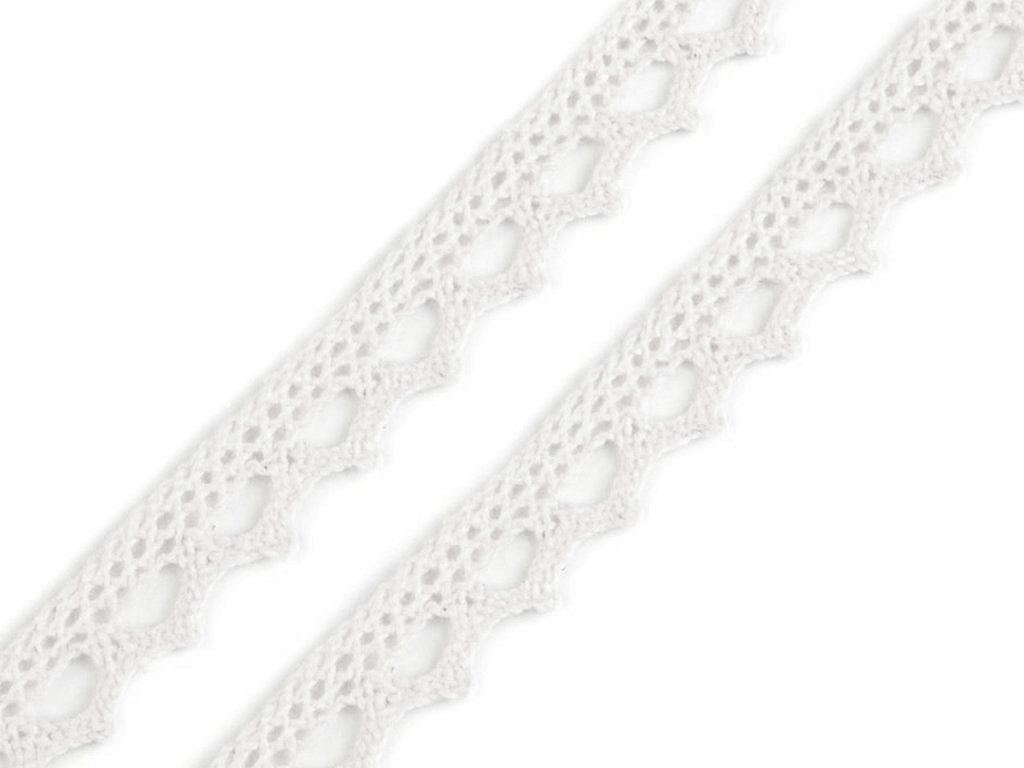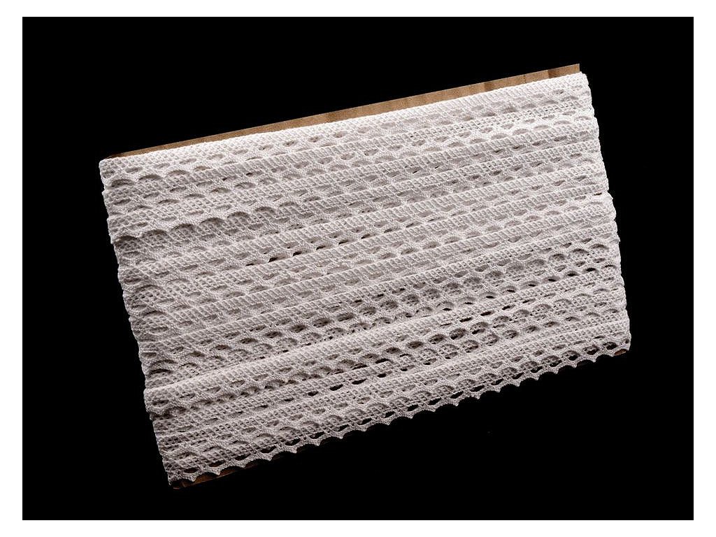 Pevná krajka je vyrobená z bavlny. Zdobí ji jemný paličkovaný vzor s drobnými očky.