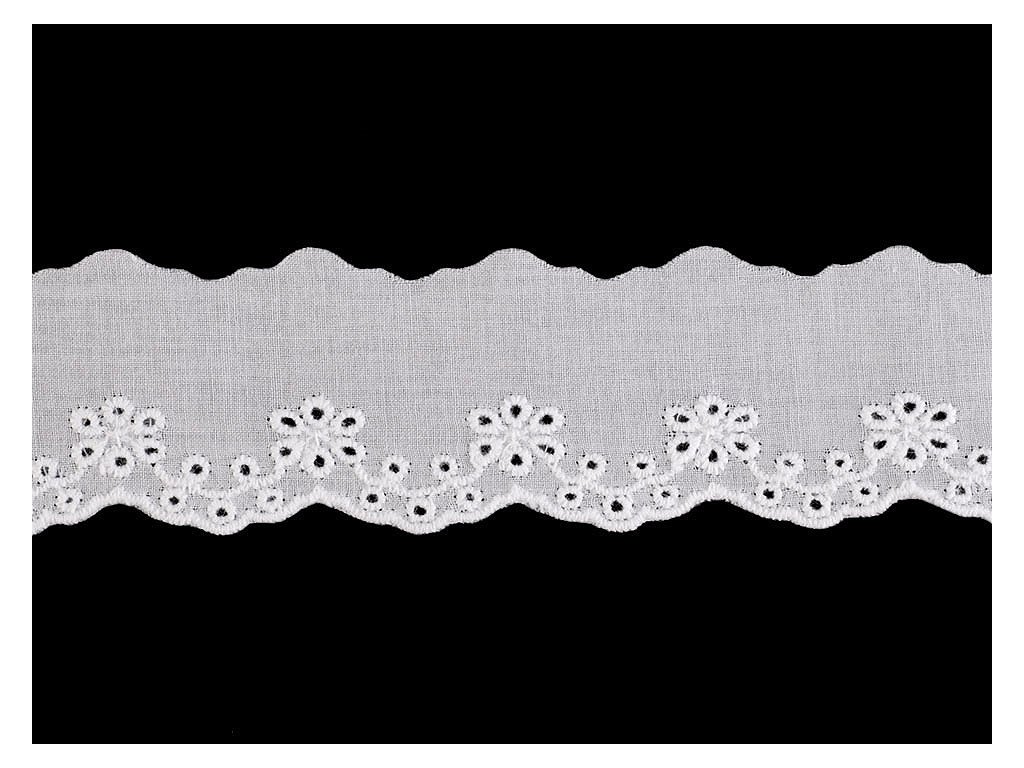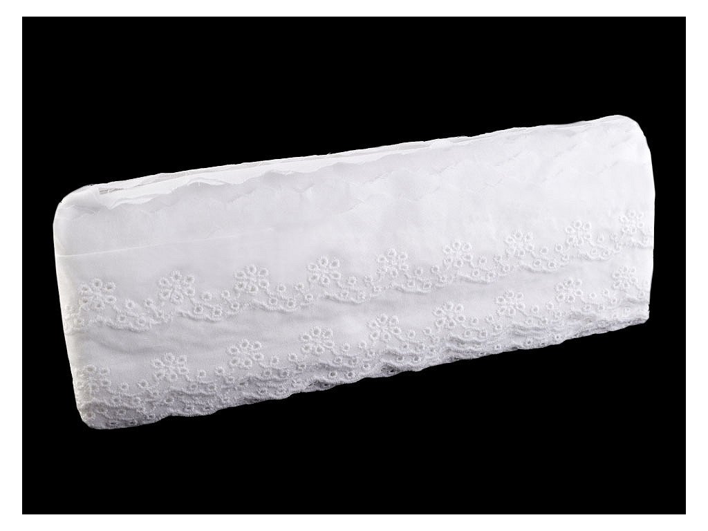 Bavlněná madeira je zdobena dírkovanou výšivkou s květy a lemovanými okraji.
