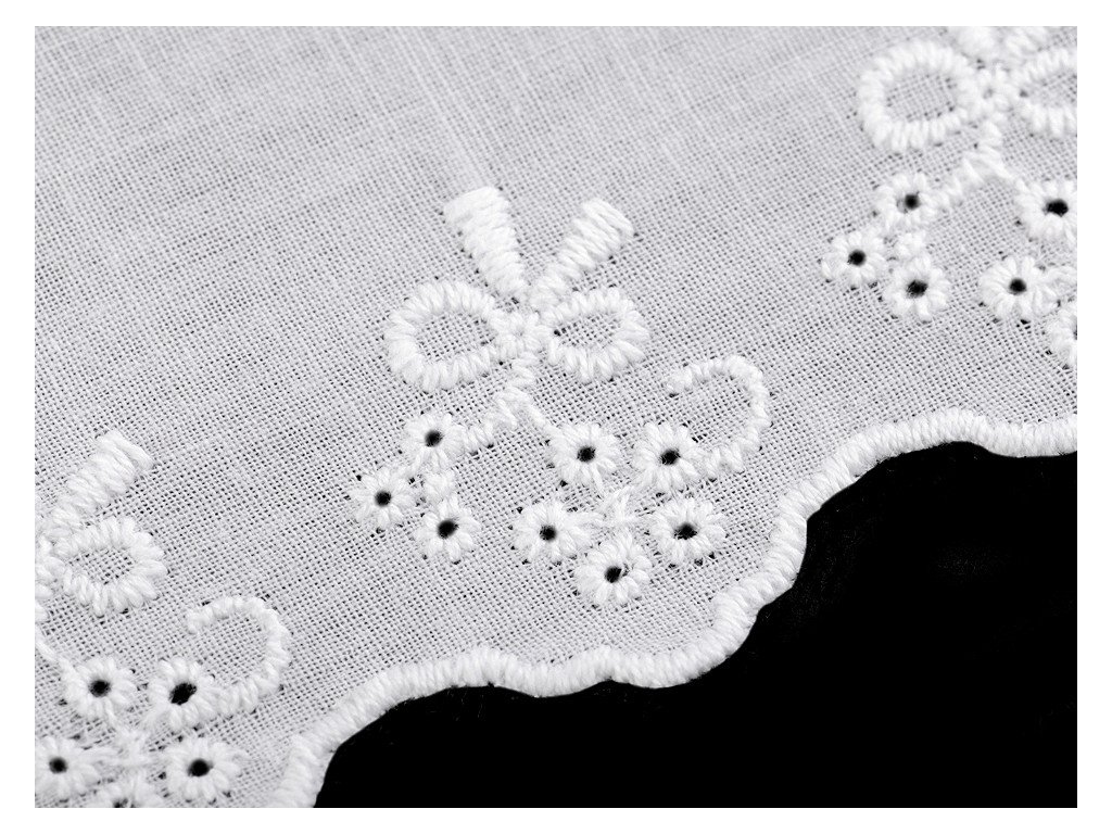 Bavlněná madeira je kvalitní a velmi příjemná na dotek. Zdobí ji dírkovaná výšivka.