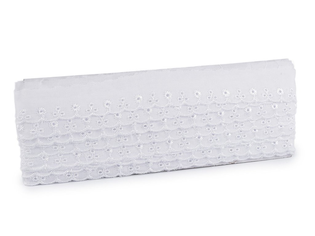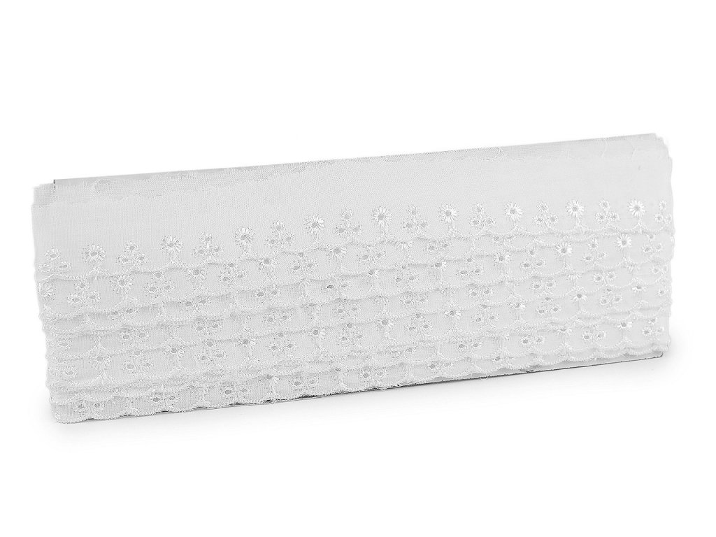Madeiru s jemnou dírkovanou výšivkou využijete k dekoraci ubrusů, závěsů nebo ložního prádla. Rovněž je ideální pro zdobení oděvů, kde vytvoří originální a atraktivní detaily jako jsou lemy rukávů, sukní nebo výstřihů.