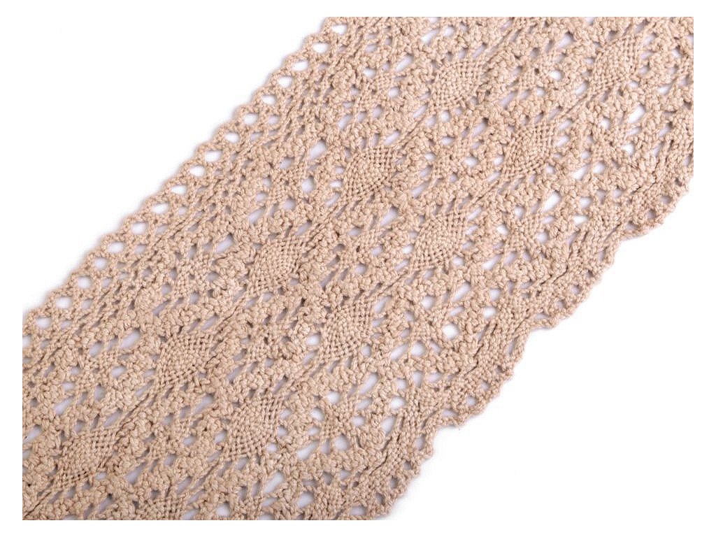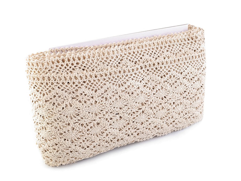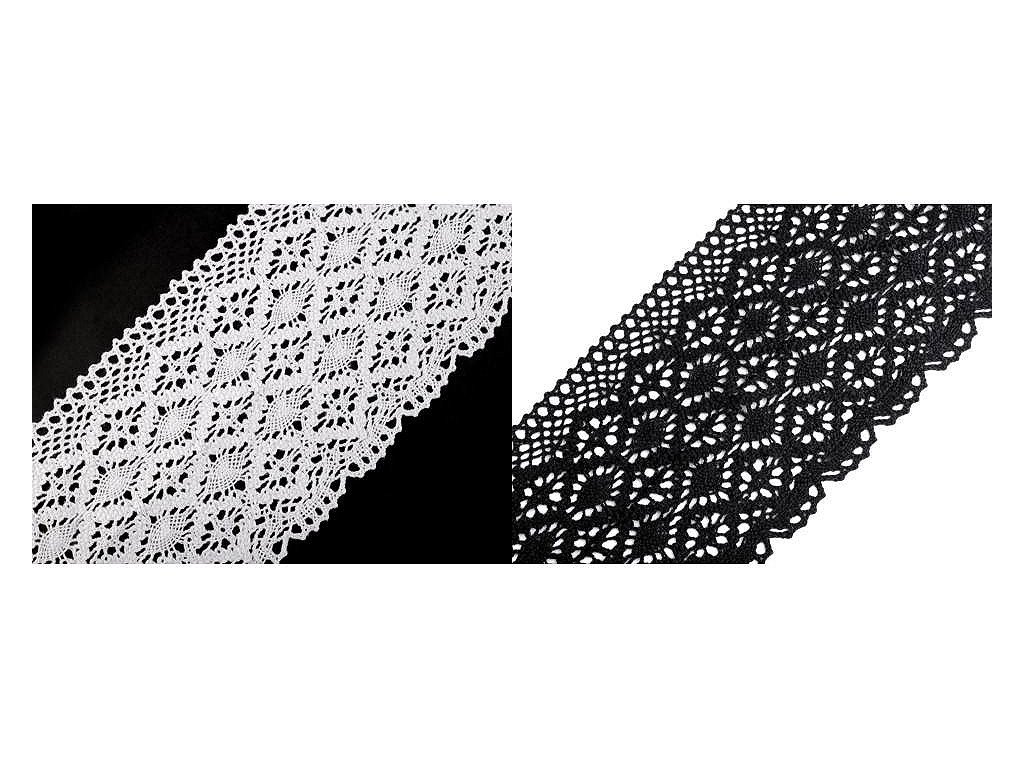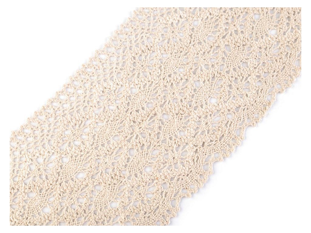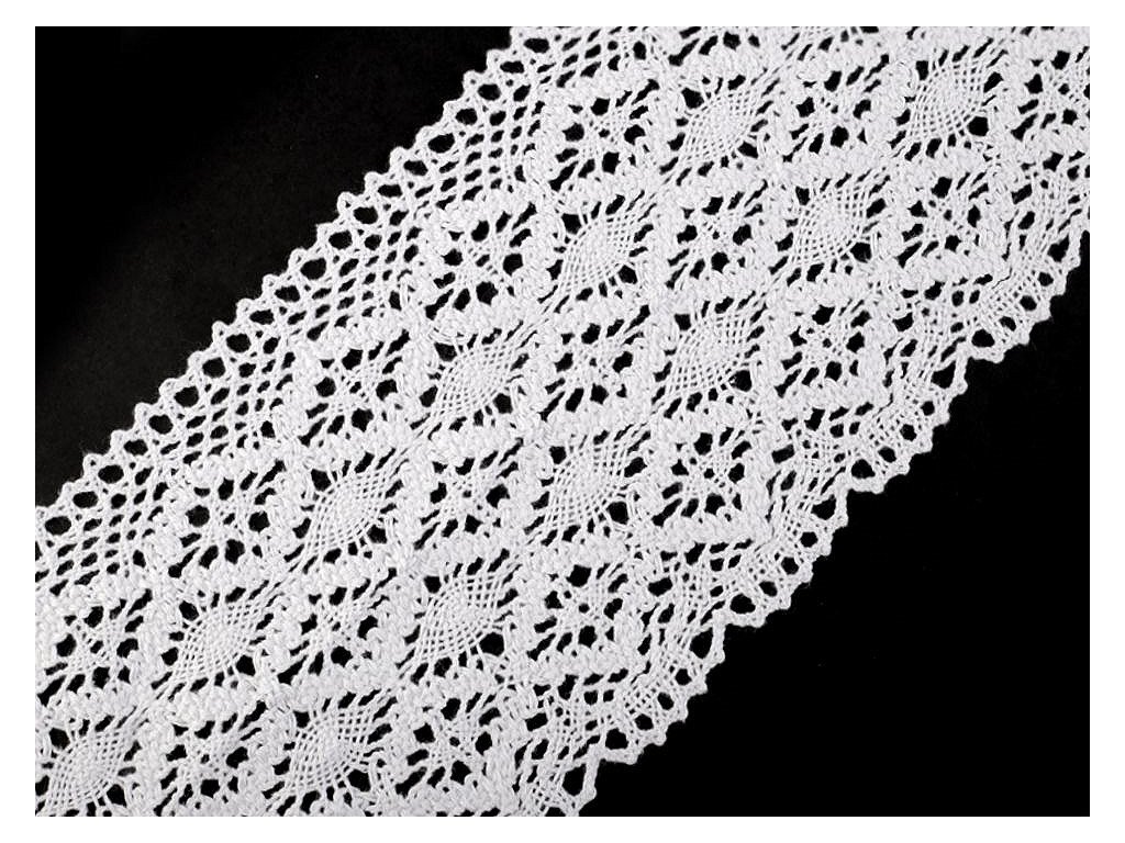 Široká paličkovaná krajka dodá vašim výrobkům a dekoracím nádech vintage stylu. Je pevná, vyrobená z kvalitní bavlny.