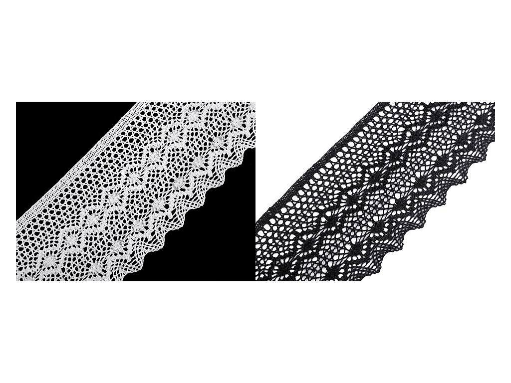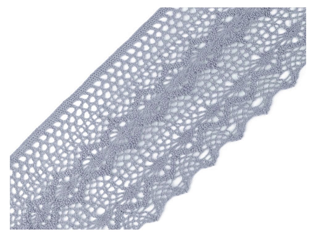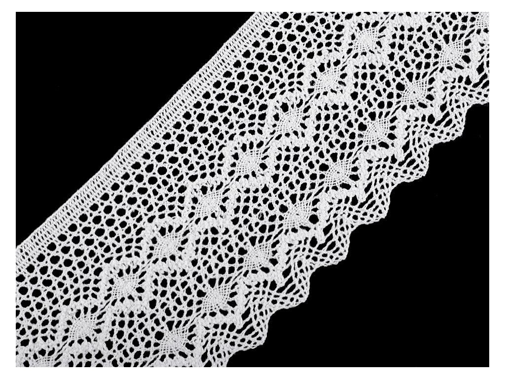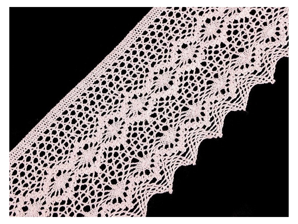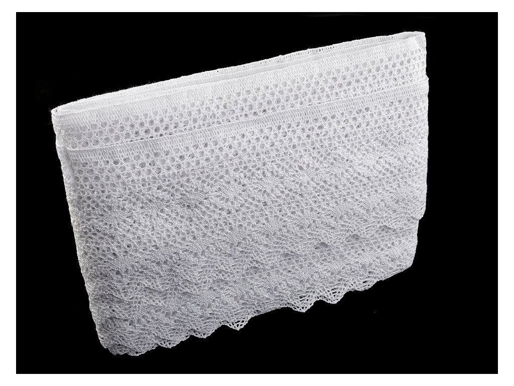 Široká paličkovaná krajka vdechne vašim výrobkům nádech vintage stylu. Jednu stranu má rovnou, druhou zdobí obloučky.