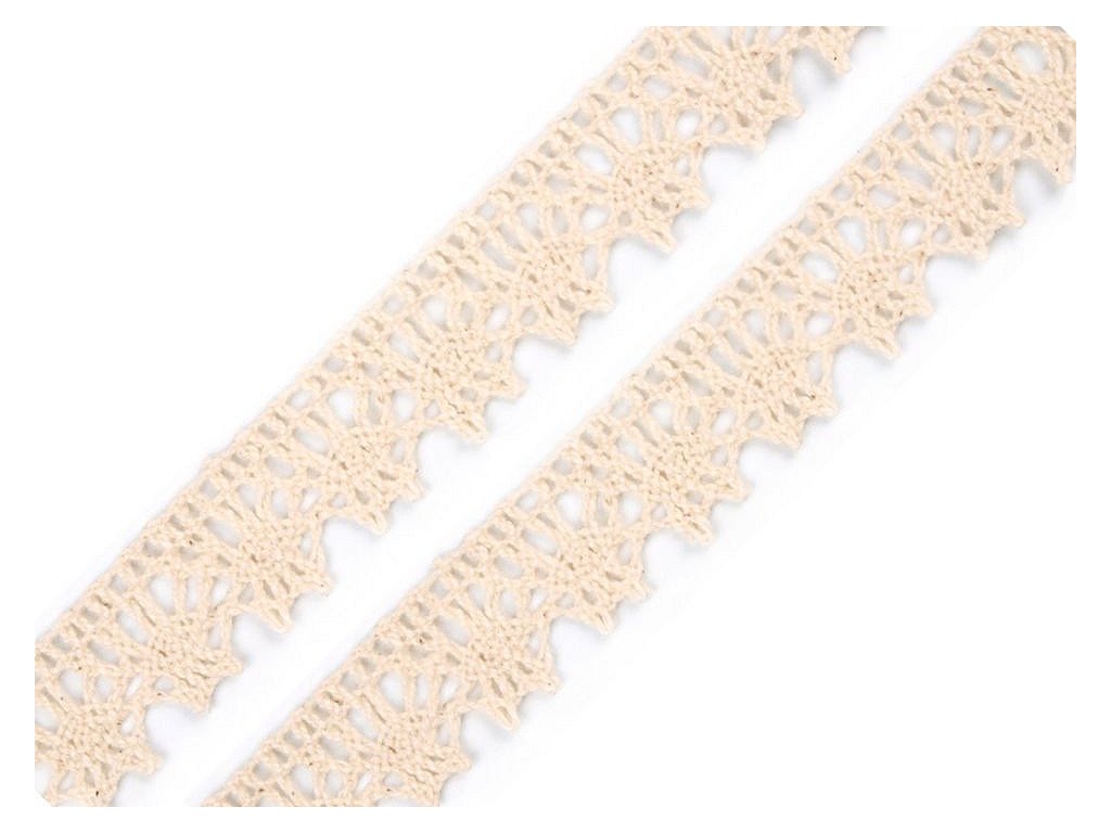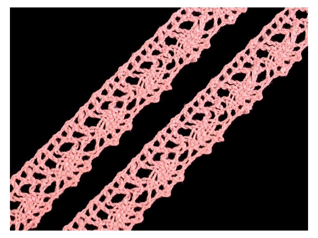Paličkovaná krajka je vyrobena z bavlny a je doplněna zajímavým vzorem. Doporučujeme ji žehlit přes tkaninu.