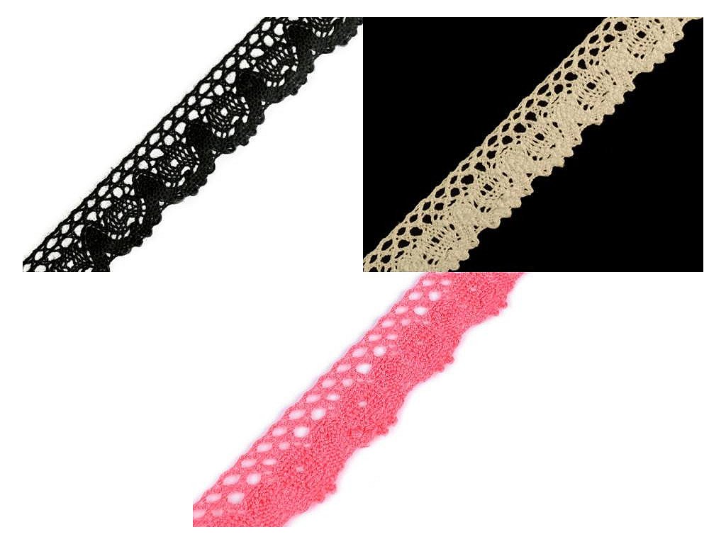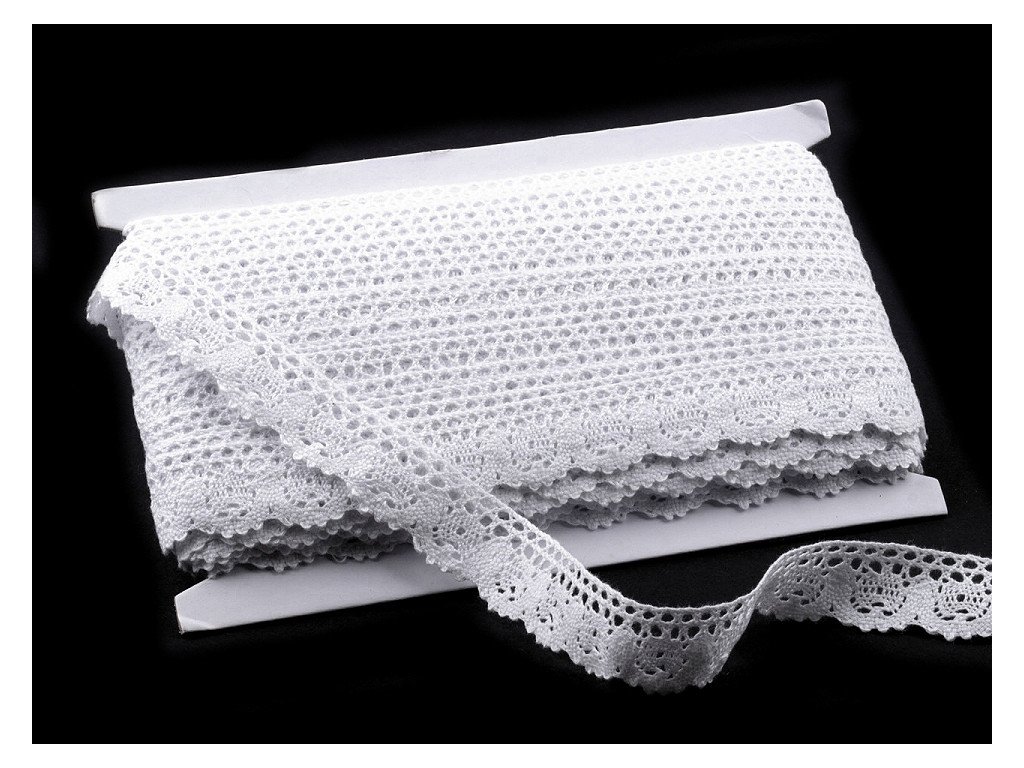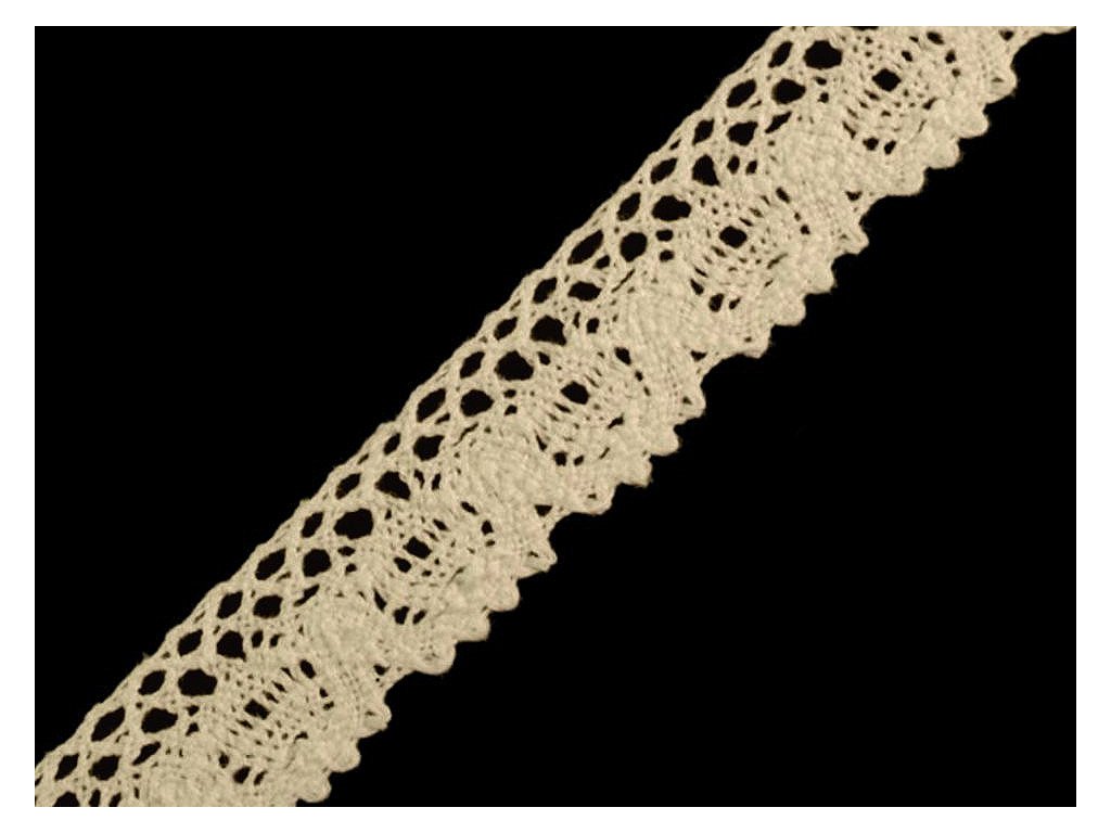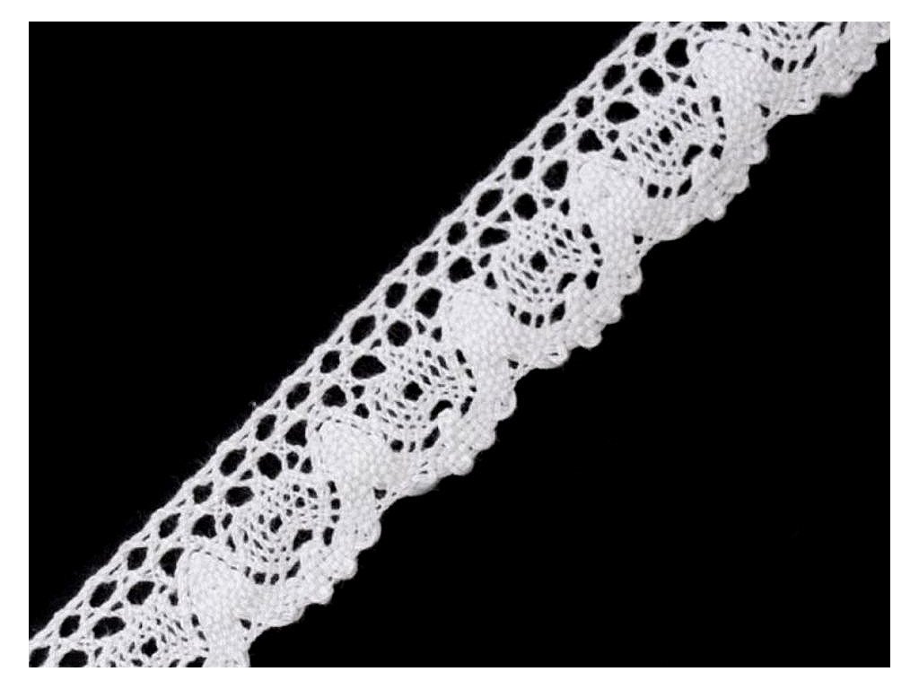 Bavlněné paličkované krajce dominuje vlnkovaný vzor. Doporučujeme ji žehlit přes tkaninu.