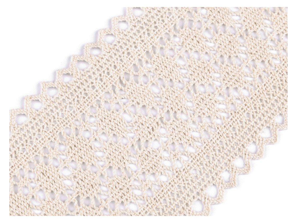 Bavlněná paličkovaná krajka je vhodná ke zdobení nejen oděvů, ale i doplňků. Můžete ji našít na polštáře nebo ubrusy, ale také ji můžete nalepit na sklenice či svícny.