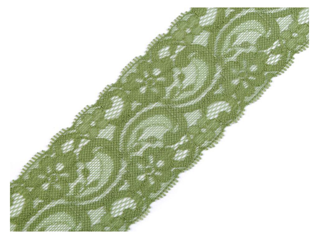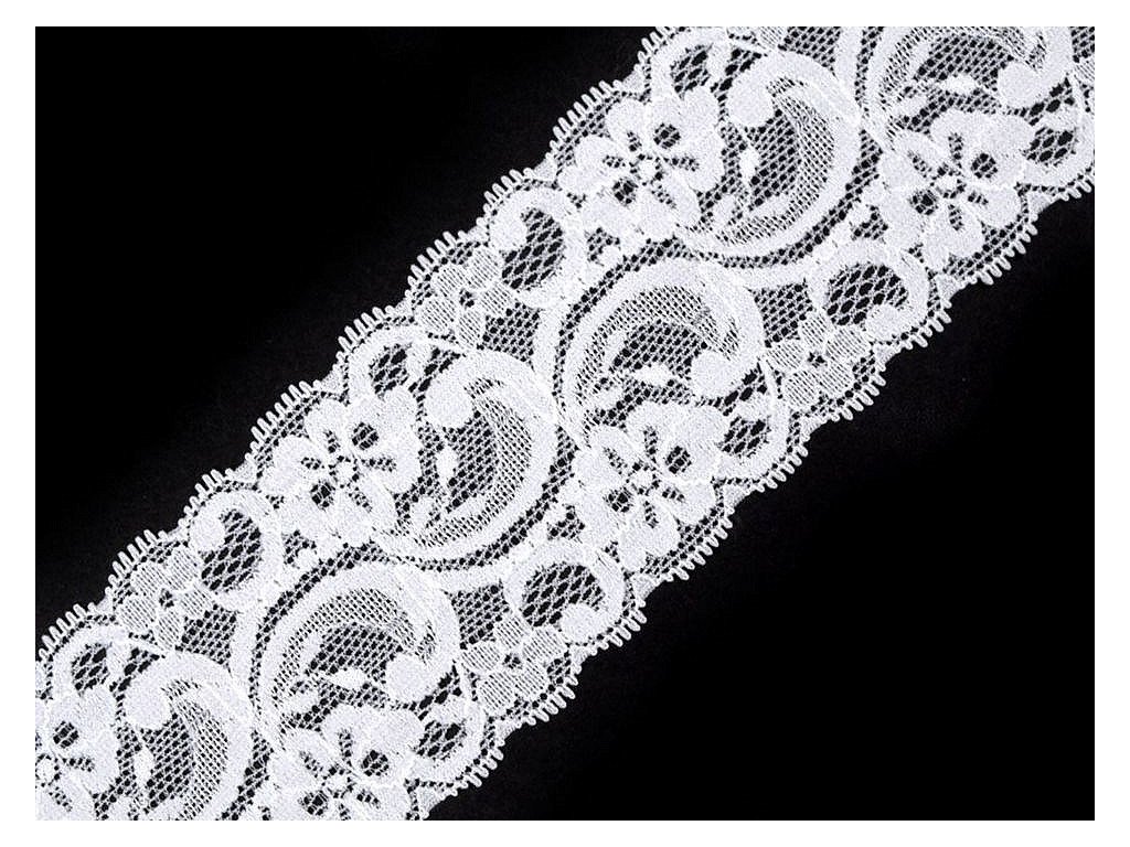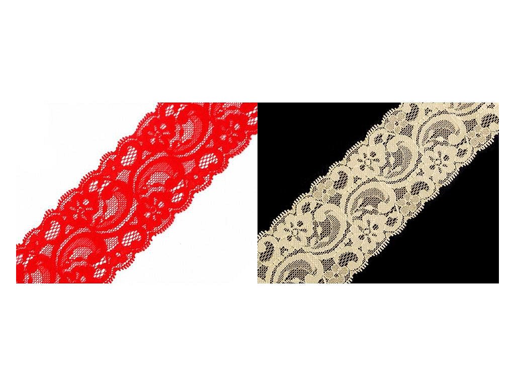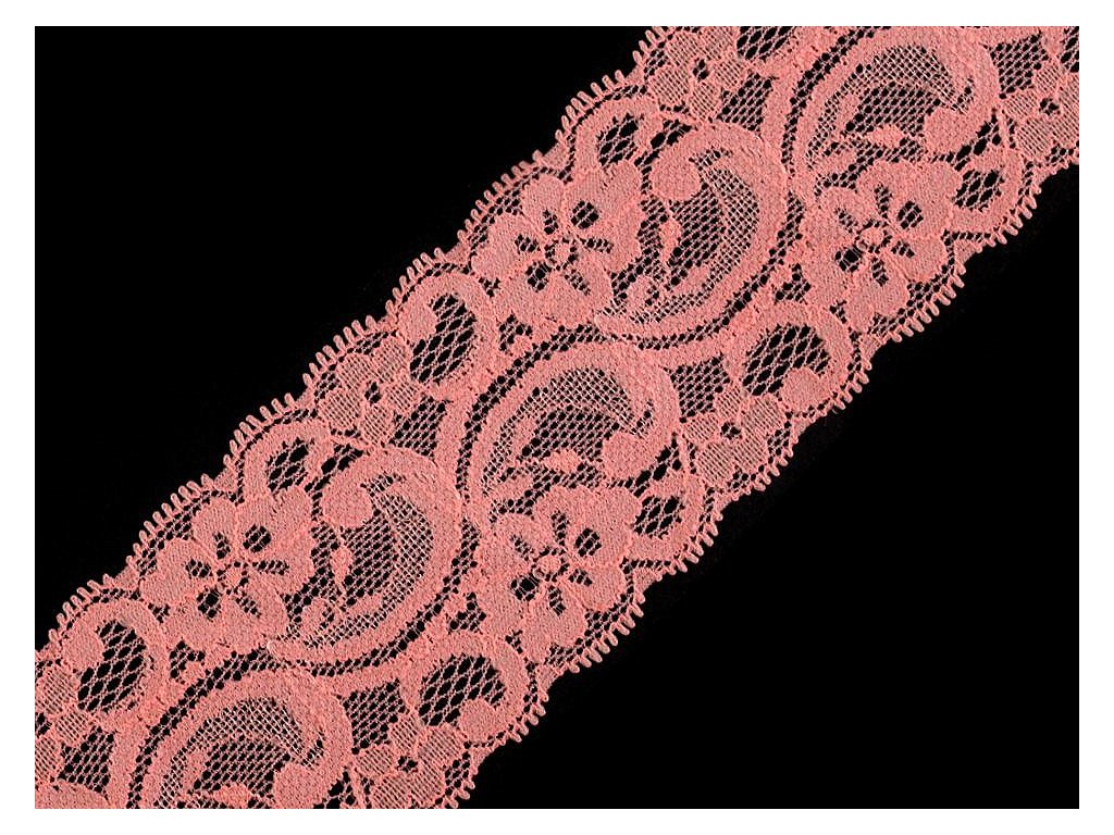 Elastická krajka o šíři 55 mm je vyrobená z kvalitního polyamidu. Díky elastanu je krajka poměrně pružná. Nejčastěji se používá na lemování spodního prádla, lze ji ale použít i na dámská trika, sukně, ke zdobení přání atd.