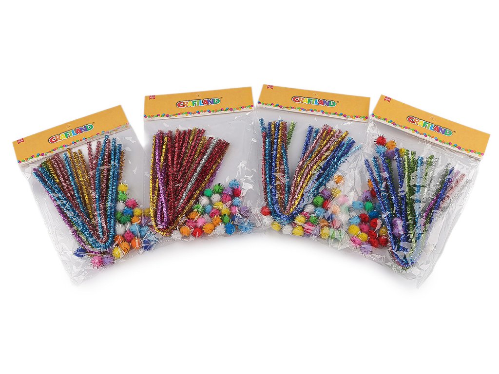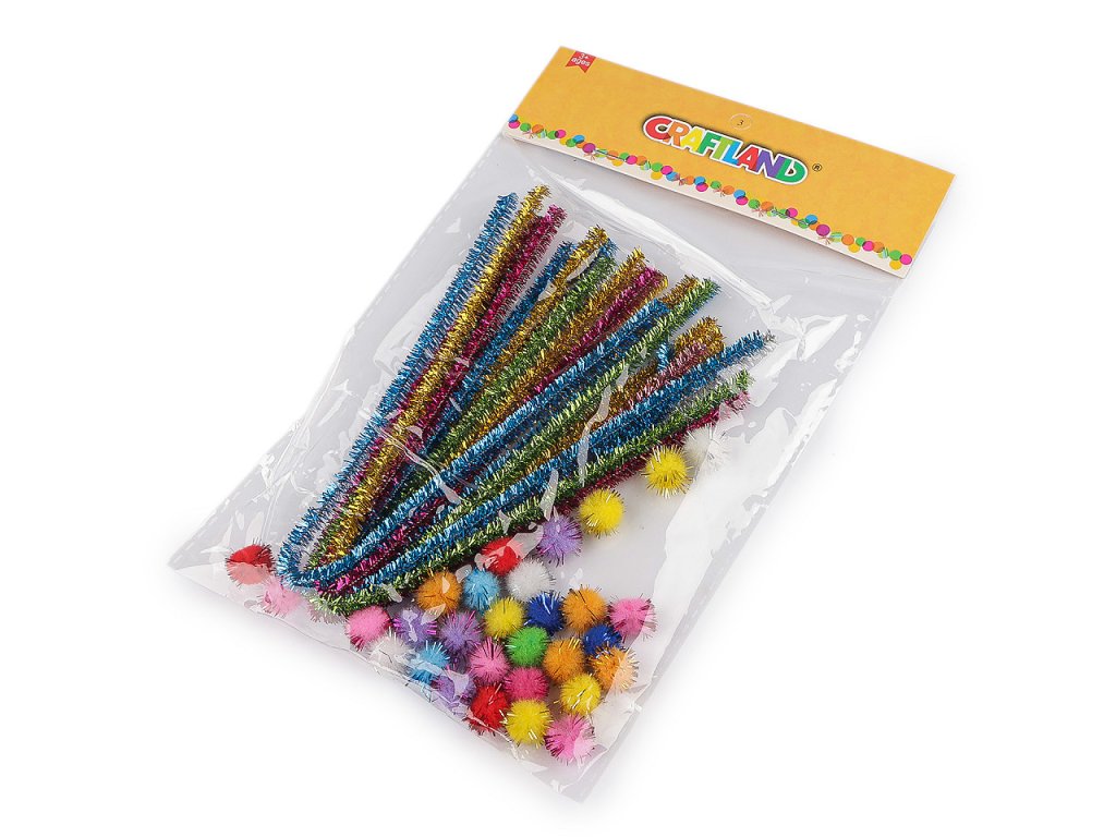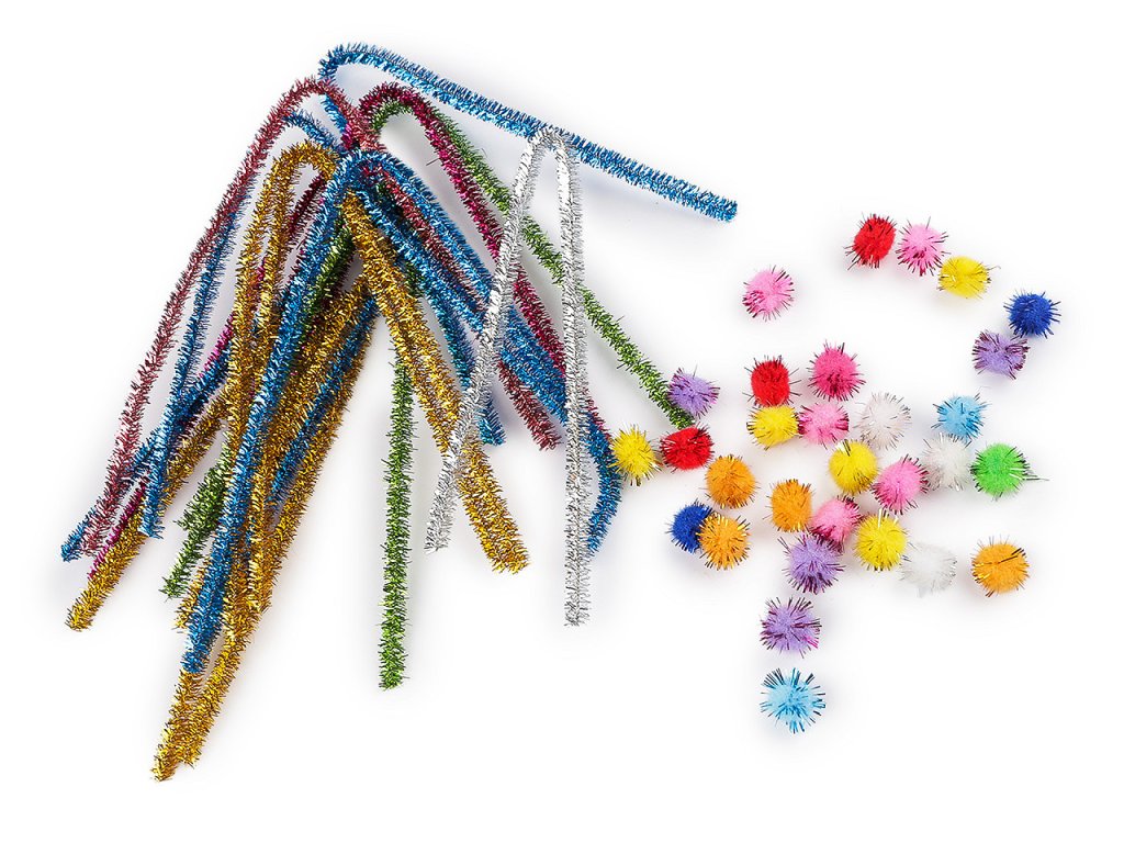 Kreativní sada chlupaté drátky a bambulky s lurexem