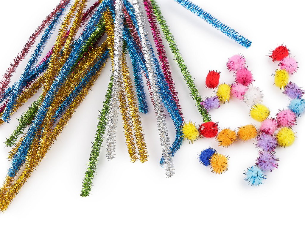 Kreativní sada z chlupatých lurexových drátků a malých bambulek s lurexem nadchne děti i dospělé. Drátky i bambulky se krásně třpytí, můžete z nich vytvořit vlastní postavičky zvířátek, pohádkových postav či lidí, můžete vyrobit různé květy nebo drobné roztomilé dekorace do interiéru.