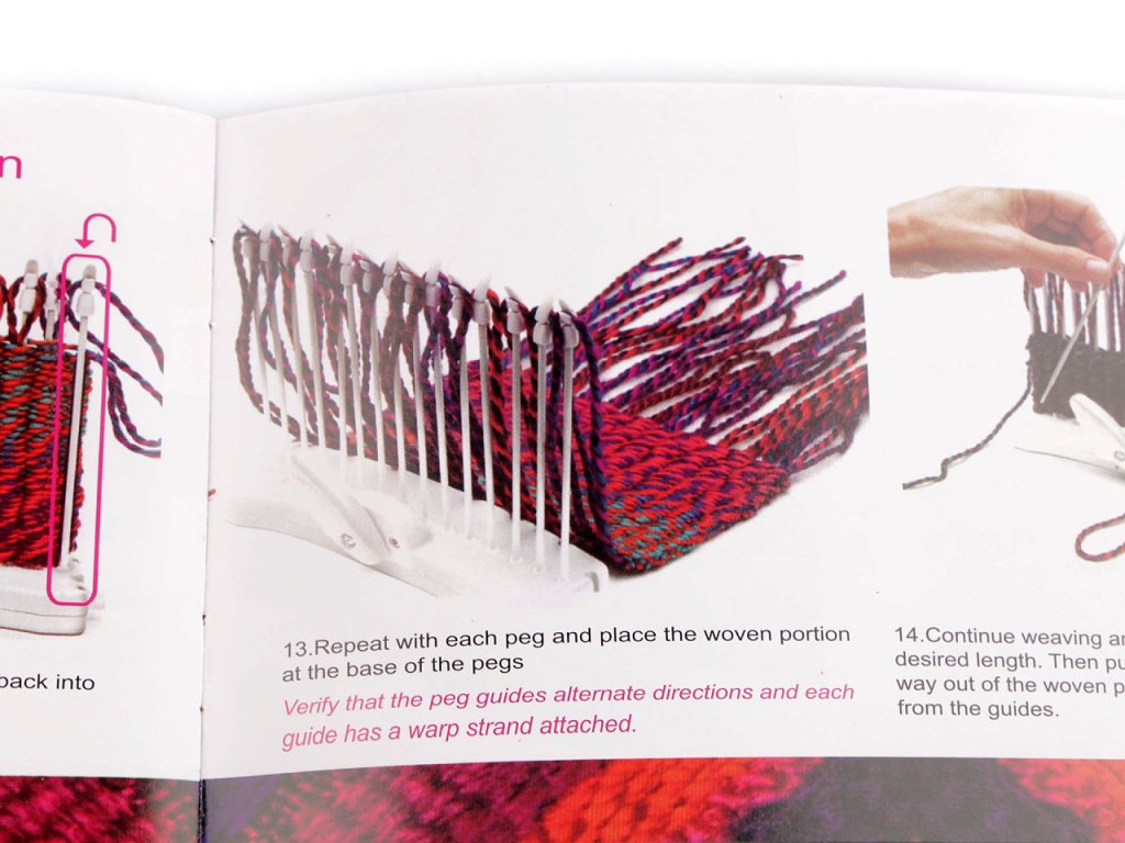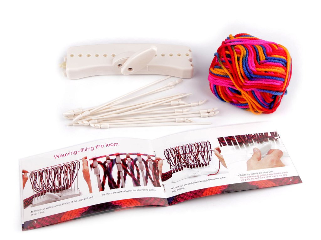 Sada obsahuje tkalcovský stav, návod a klubíčko barevné příze.