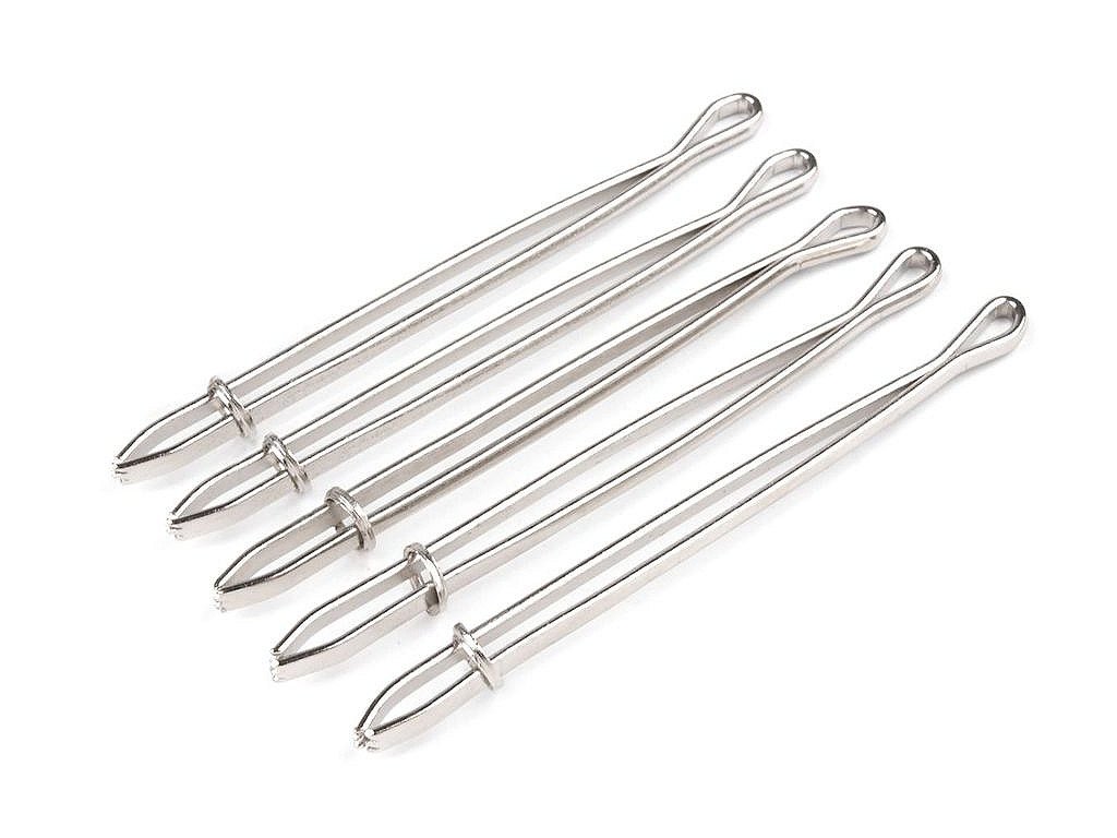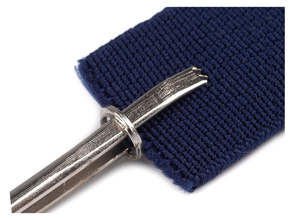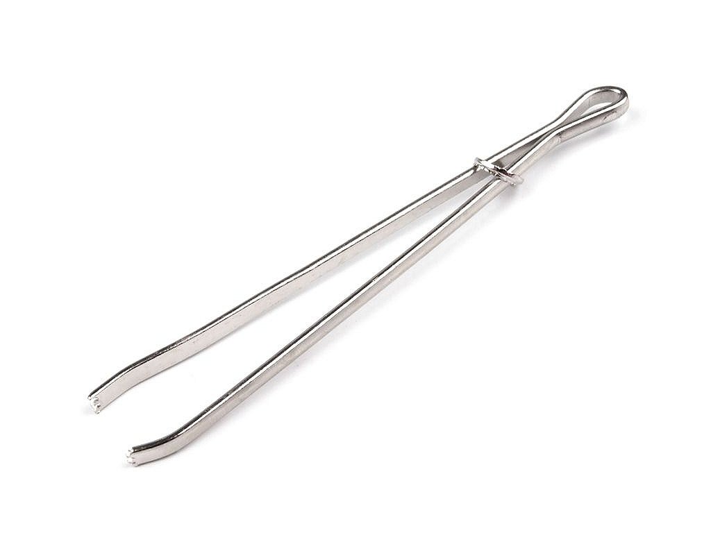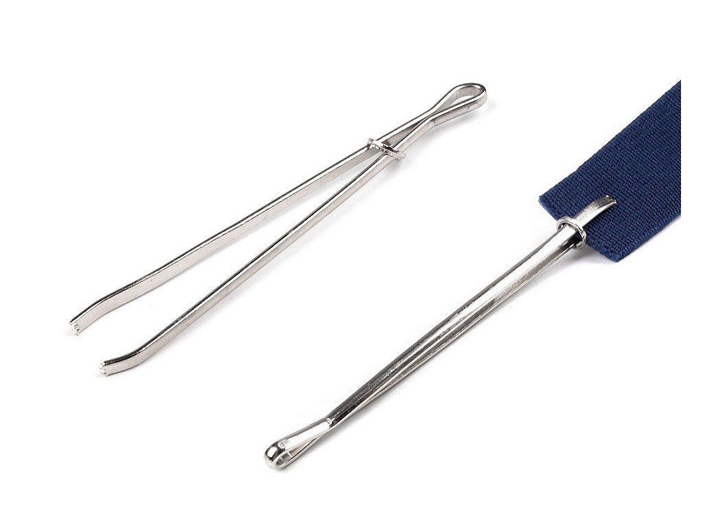 Kovový navlékač je šikovný pomocník, který vám usnadní práci při navlékání gumy. Připomíná pinzetu. Po rozevření navlékače uchyťte gumu do jeho konců (se zoubky) a zpevněte kovovým očkem, které je jeho součástí.