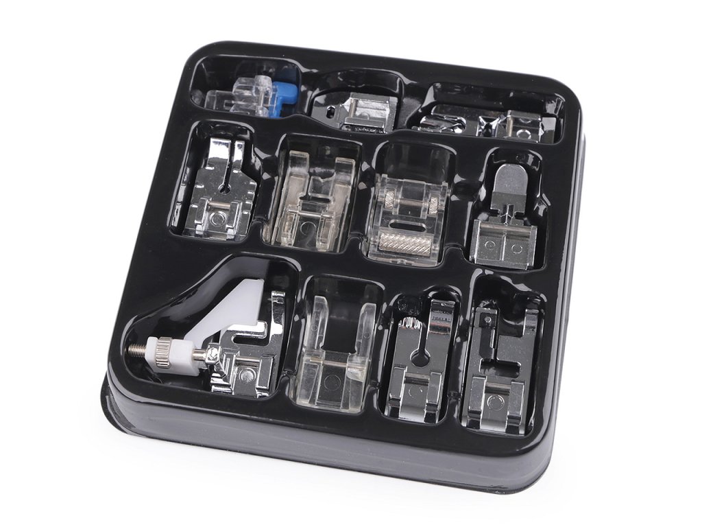 Multifunkční sadu kovových a plastových patek ocení každý, kdo doma rád a často šije. Rychloupínací systém patek je vhodný pro většinu domácích šicích strojů.