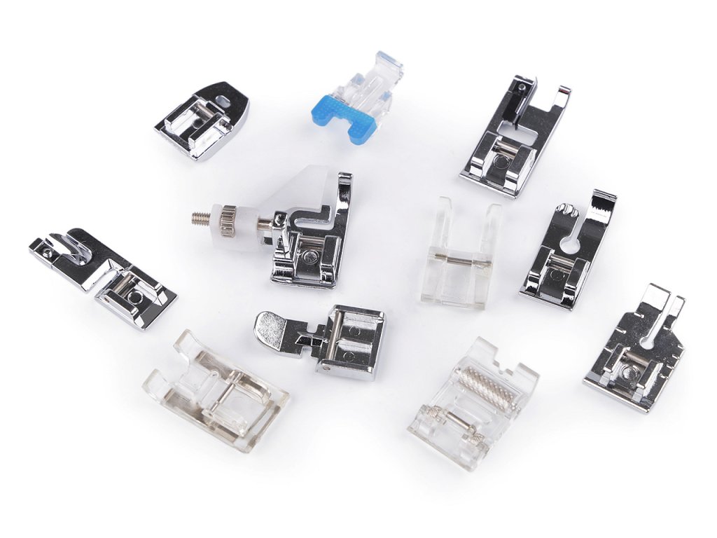 Sada kovových a plastových patek k domácímu šicímu stroji