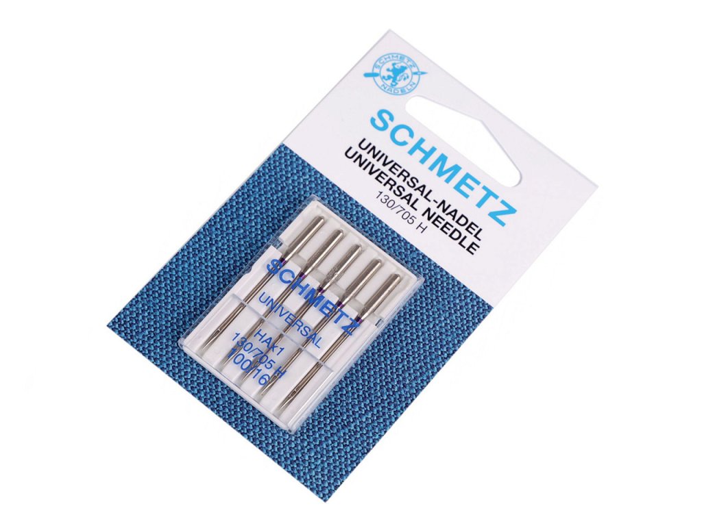 Univerzální jehly Schmetz mají lehce zaoblené hroty a vyrábějí se ve velkém výběru velikostí. Používají se pro nejběžnější typy látek a materiálů.