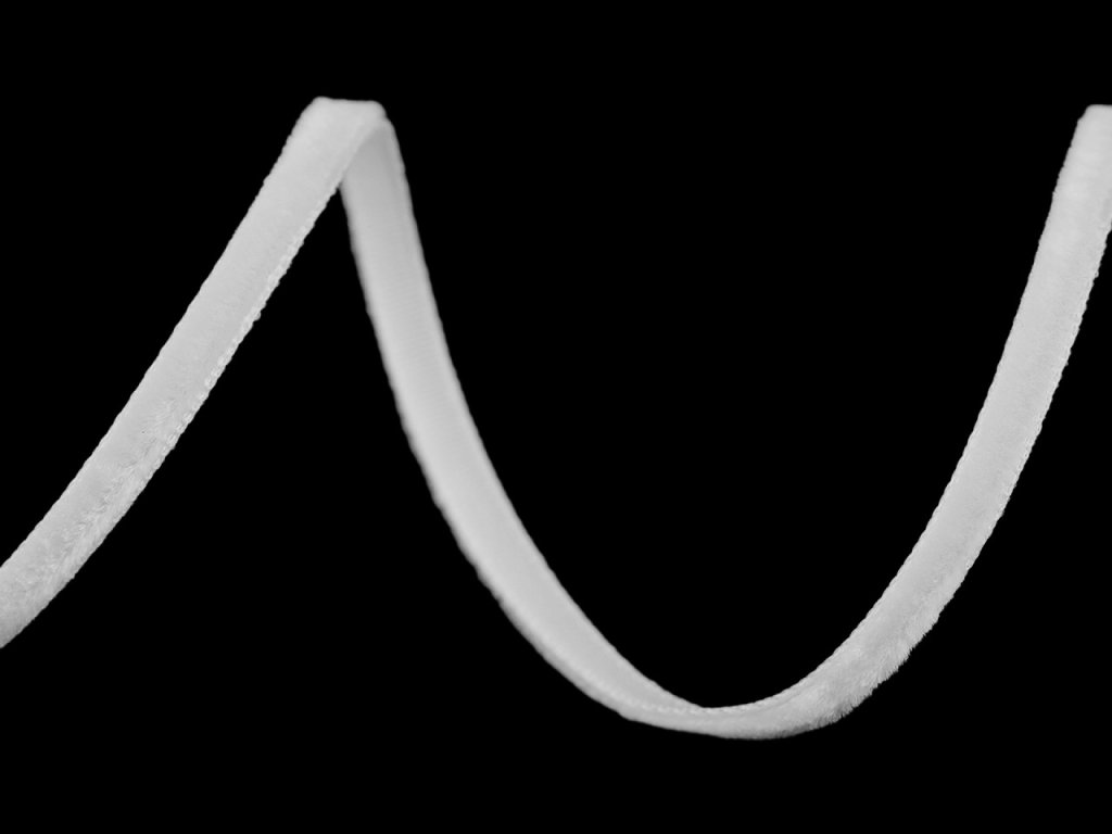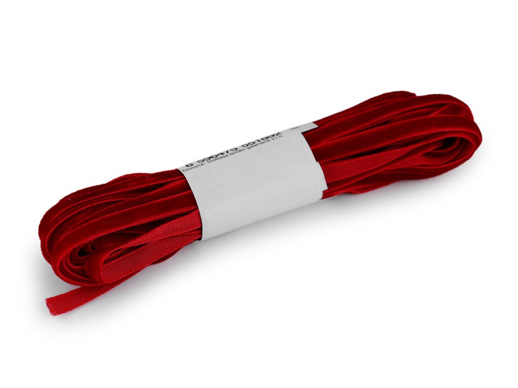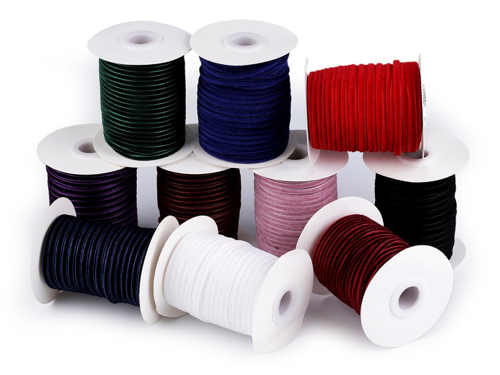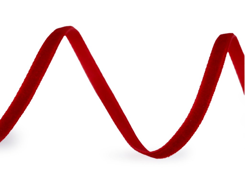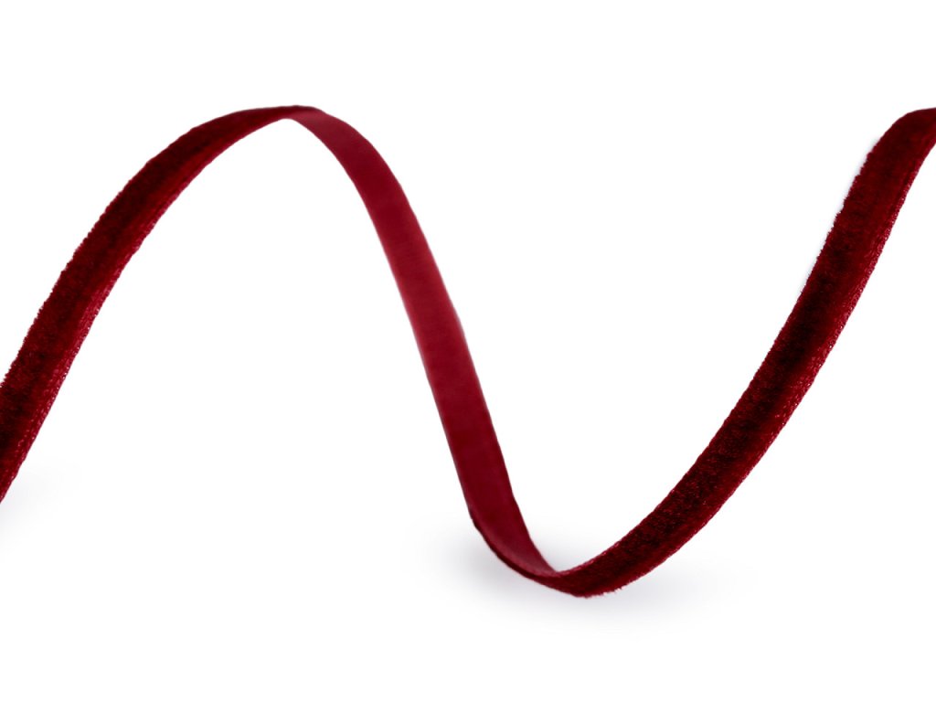 Tenká sametová stuha je vyrobená z příjemného měkkého materiálu. Je velmi pevná, stříhaný vlasec na lícové straně tvoří zdobný efekt.