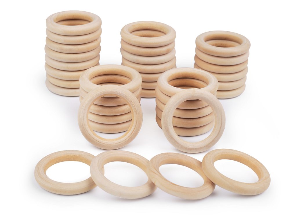 Dřevěné kroužky slouží k uchycení záclony nebo závěsu. Své využití najdou také například na výrobu lapačů snů, náhrdelníků apod. Kroužky nejsou lakované, tudíž je můžete domalovat dle vlastního vkusu a fantazie.