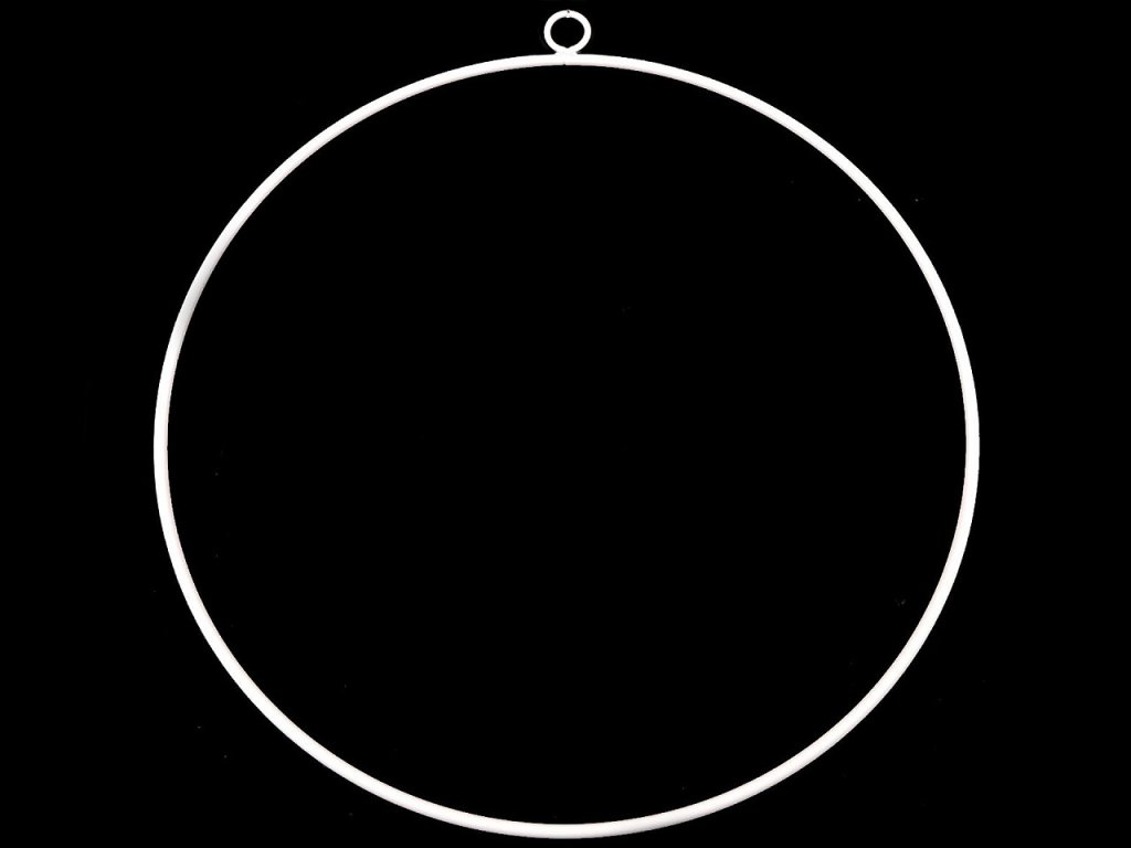 Velký kovový kruh s očkem je vhodný na výrobu lapačů snů nebo svatebních dekorací. Je velice pevný a kvalitní, je vynikající na výrobu macrame dekorací. Můžete jej využít i na vypnutí háčkované mandaly. Nahoře, v místě spoje, má očko na zavěšení, spoj je svařený. Průměr očka je 2,2 cm, průvlek očkem je 1,6 cm.
