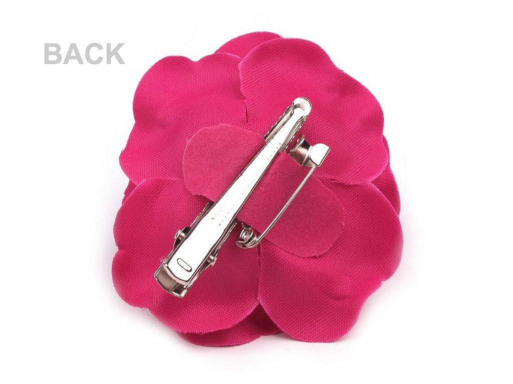 Květina je složena z drobných okvětních plátků, které vytvářejí plný květ. Z rubu růže naleznete sponu se zoubky, díky kterým bude ve vlasech perfektně držet. Dále zde také naleznete spínací špendlík, kterým květ připnete na šaty, sako, atd. Ozdoba je ke sponce a špendlíku pevně přilepena. S tímto romantickým květem oslníte nejen muže, ale určitě připoutáte pozornost i žen.