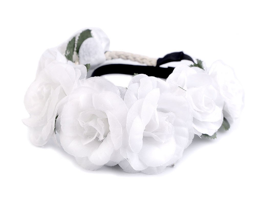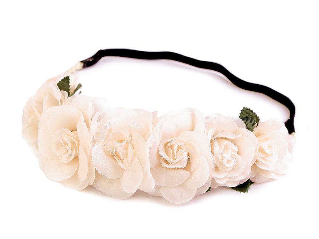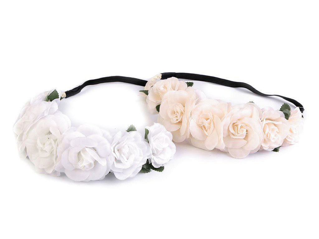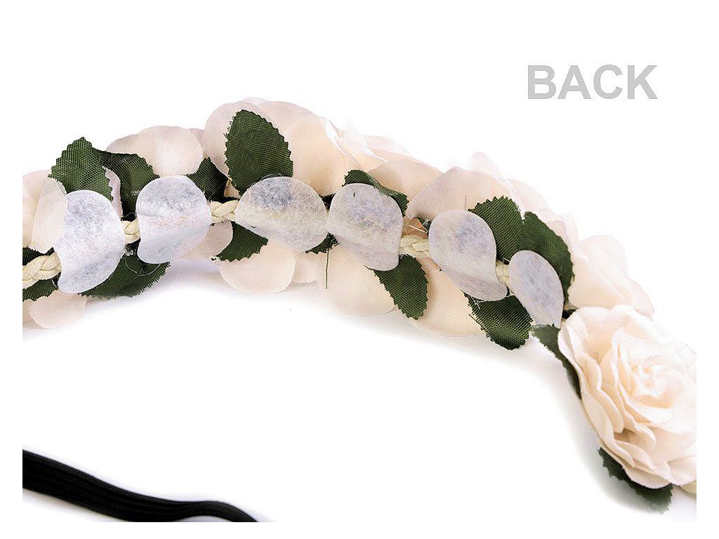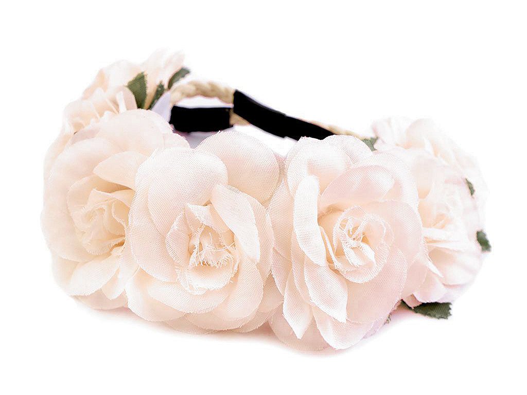 Květinová čelenka s růžemi romanticky ozdobí váš účes. Ať už budete mít vlasy rozpuštěné či zapletené, budete vypadat křehce. Čelenku využijí i dívky, které čeká První svaté přijímání, neměla by chybět v účesu žádné družičky.