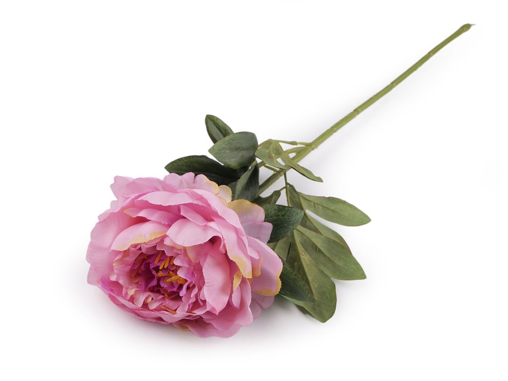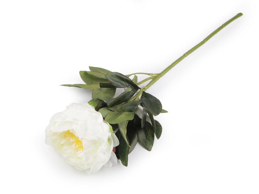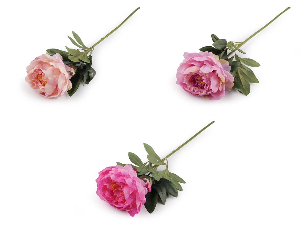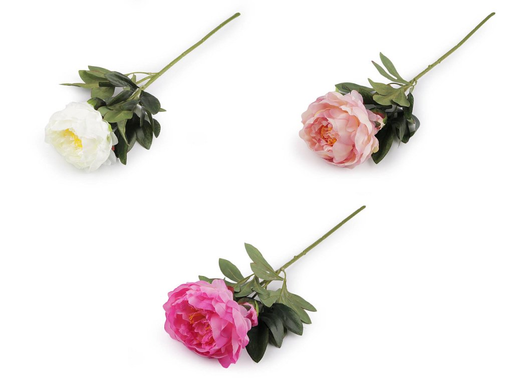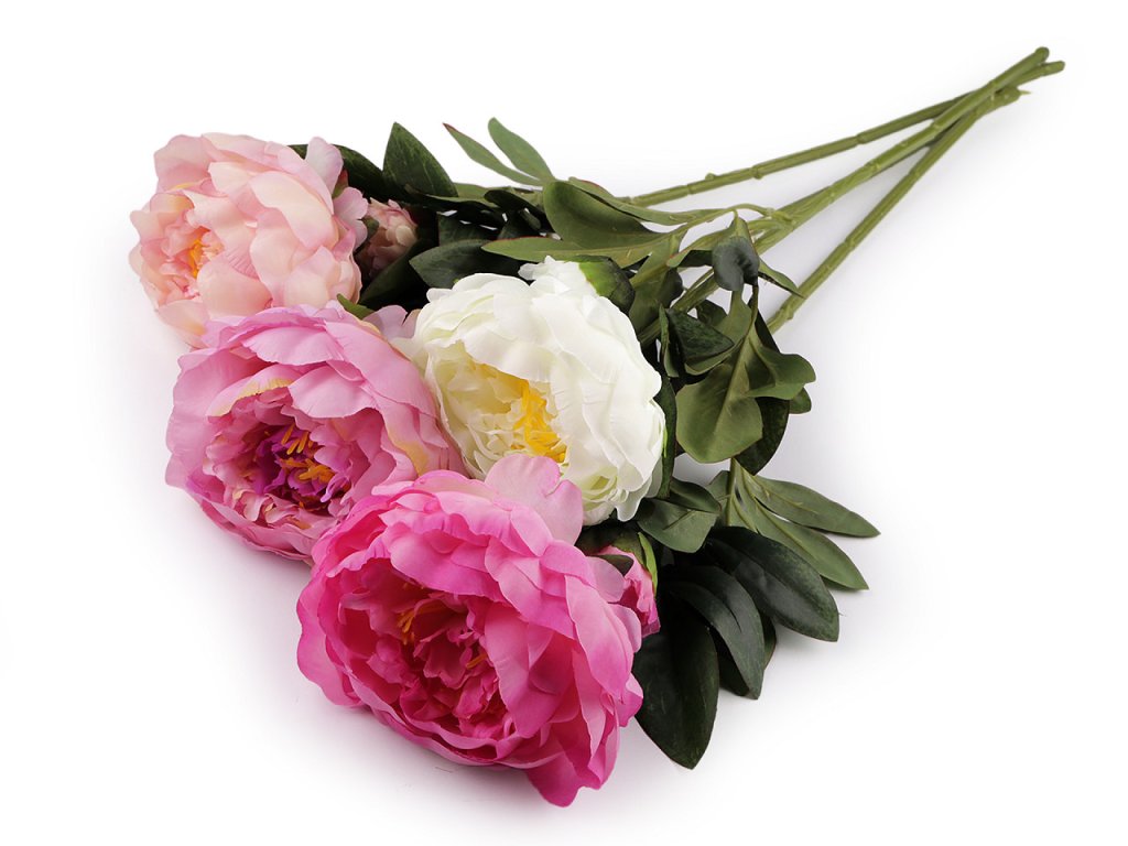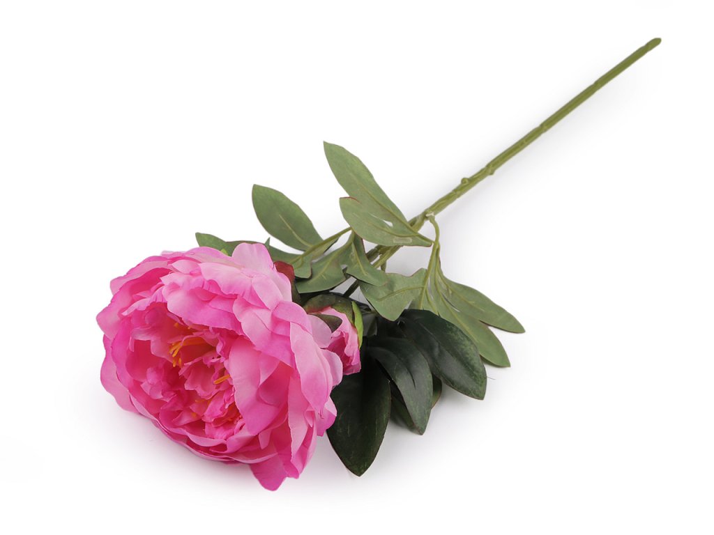 Umělá pivoňka vám romanticky doladí vázy, květinová aranžmá i věnce. Stonek je plastový, s drátem uvnitř. Najdete na něm bohatý textilní květ a poupě.