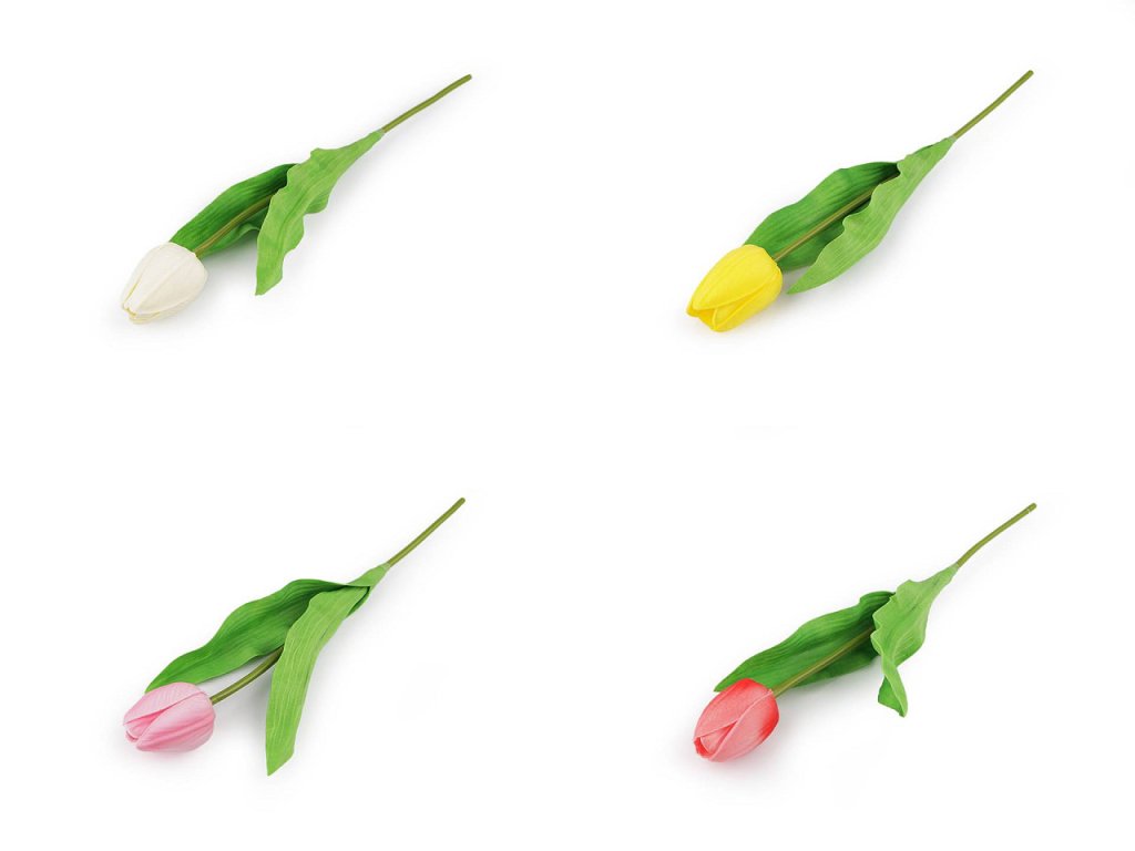 Dekorační tulipán je velice realistický. Měkký plast, ze kterého je vyrobený, má efektní žilkování. Tulipány využijete na dekorační vazby, ikebany nebo věnce. Vyniknou také jednoduše položené ve váze. Uvnitř stonku mají drát, díky kterému se dají tvarovat.