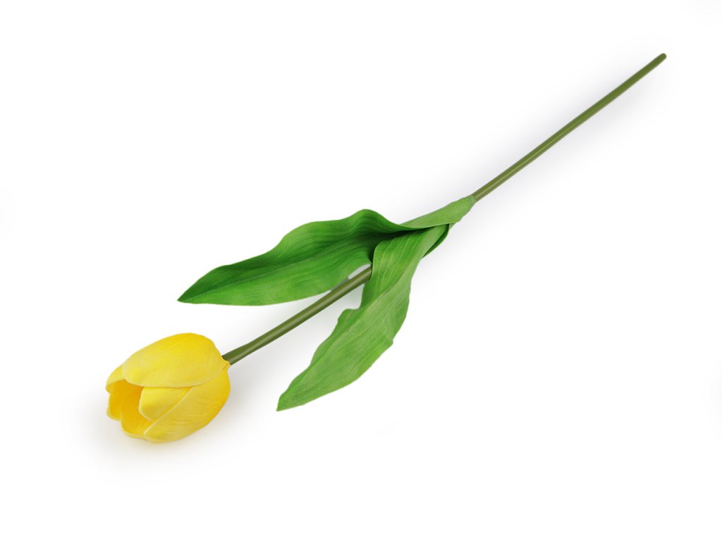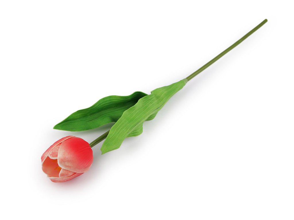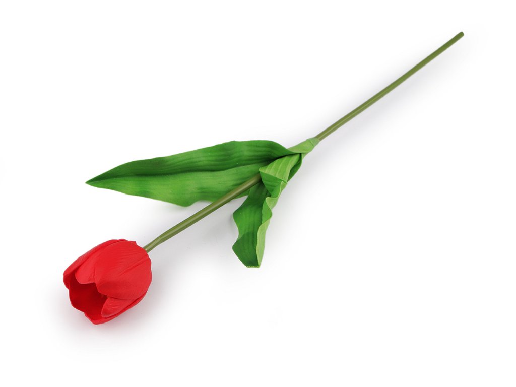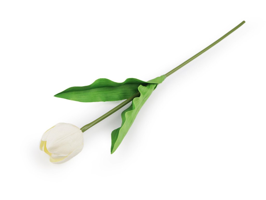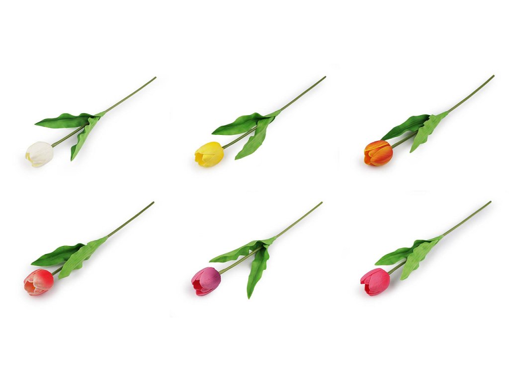 Dekorační tulipán s dlouhým stonkem je velice realistický. Měkký plast, ze kterého je vyrobený, má efektní žilkování. Tulipány využijete na dekorační vazby, ikebany nebo věnce. Vyniknou také jednoduše položené ve váze. Uvnitř stonku mají drát, díky kterému se dají tvarovat.