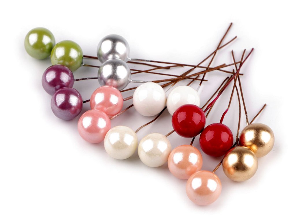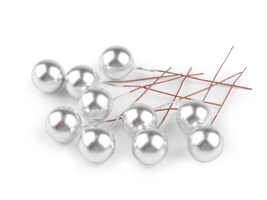 Dekorační kuličky jsou připevněné k ohebnému floristickému drátku. Vyniknou zakomponované ve vánočních vazbách, věncích, truhlících a různých dekoracích.