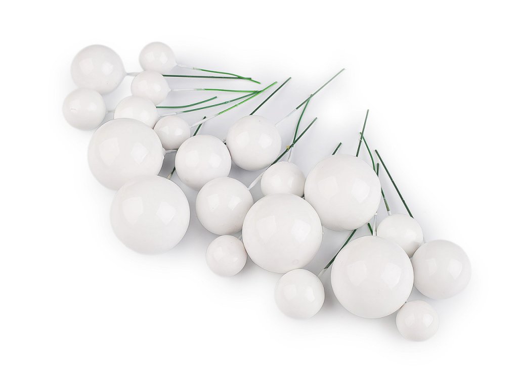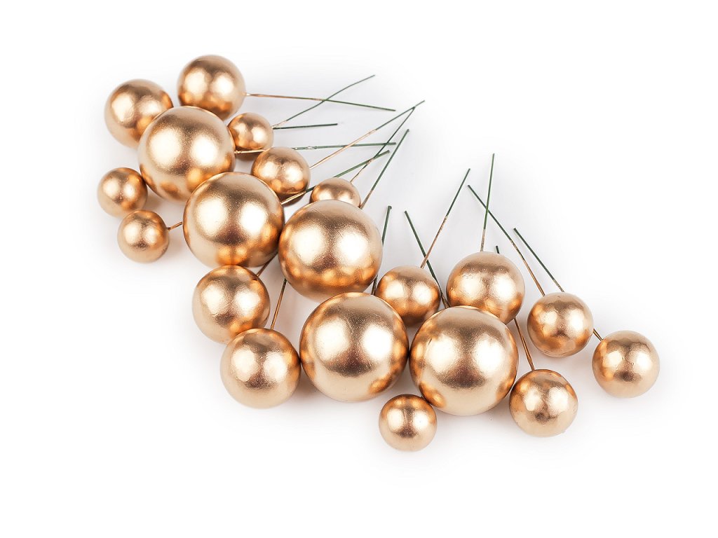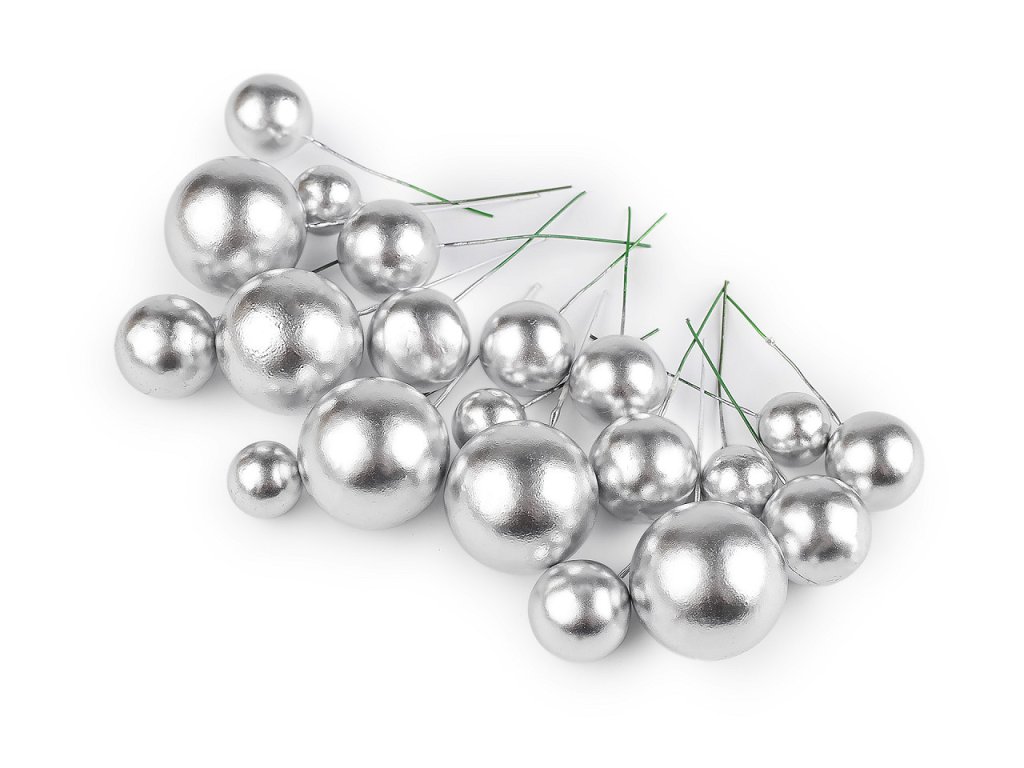 Dekorační kuličky jsou připevněné k ohebnému floristickému drátku. Můžete je zakomponovat do květinových vazeb, věnců, truhlíků a různých dekorací. Mix různých velikostí přidává výrobkům zajímavou dynamiku a umožňuje kreativní variabilitu.