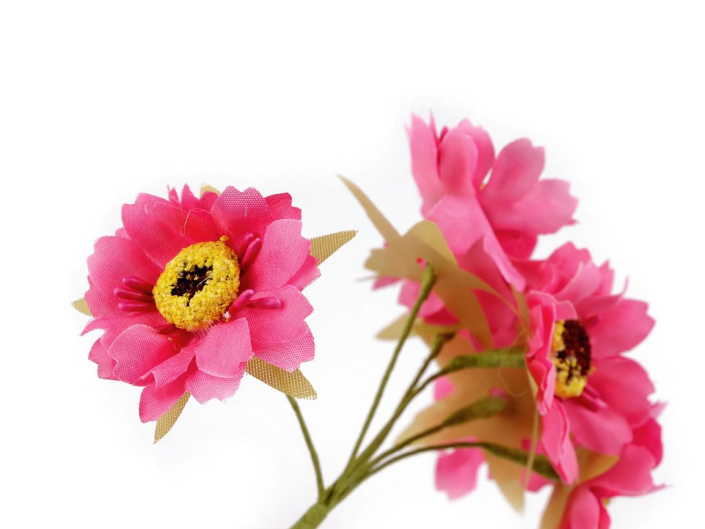 Umělé květy s pestíky jsou připevněné k drátku, který je omotaný floristickou páskou. Můžete je lehce ohýbat a tvarovat.