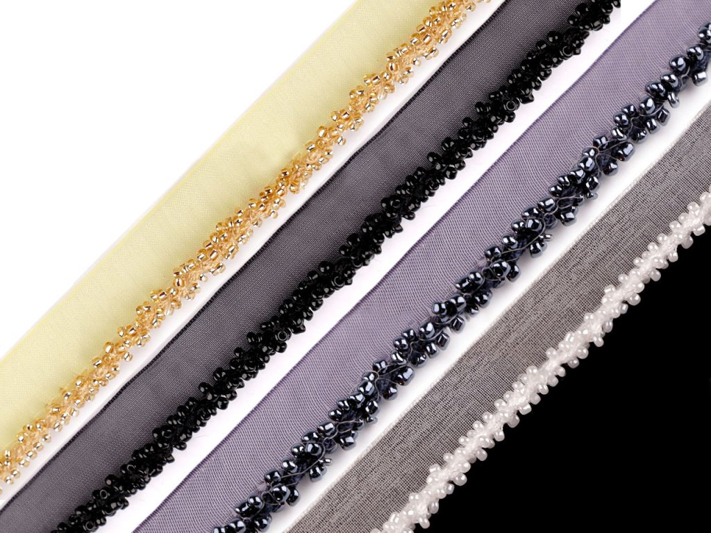 Paspulka se skleněným rokajlem dodá vašemu oděvu nádech elegance. Využijete ji k ozdobení lemů či švů. Korálky jsou přišité na monofilovém základě. Paspulka vynikne na společenských a plesových šatech, halenkách, sukních, kostýmech i módních doplňcích, jako jsou slavnostní psaníčka, obuv apod.