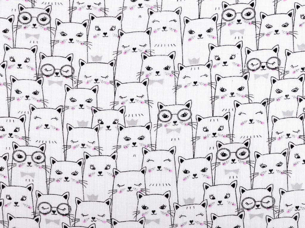 Bavlněná plenkovina je jemná, vzdušná a příjemná na dotek. Zdobí ji motivy koček, které jsou jednostranné. Využijete ji převážně na šití plenek, baldachýnů, bryndáčků apod.
