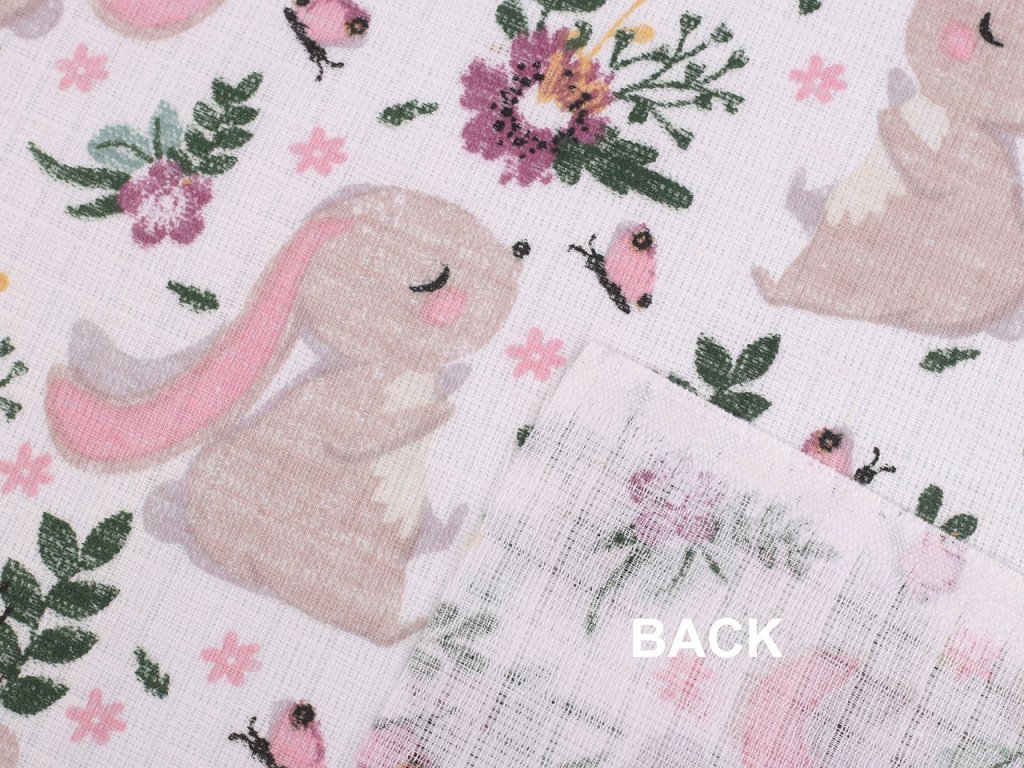 Bavlněnou plenkovinu s roztomilými králíčky využijete na šití plenek, baldachýnů, bryndáčků apod. Je vzdušná a příjemná na dotek.