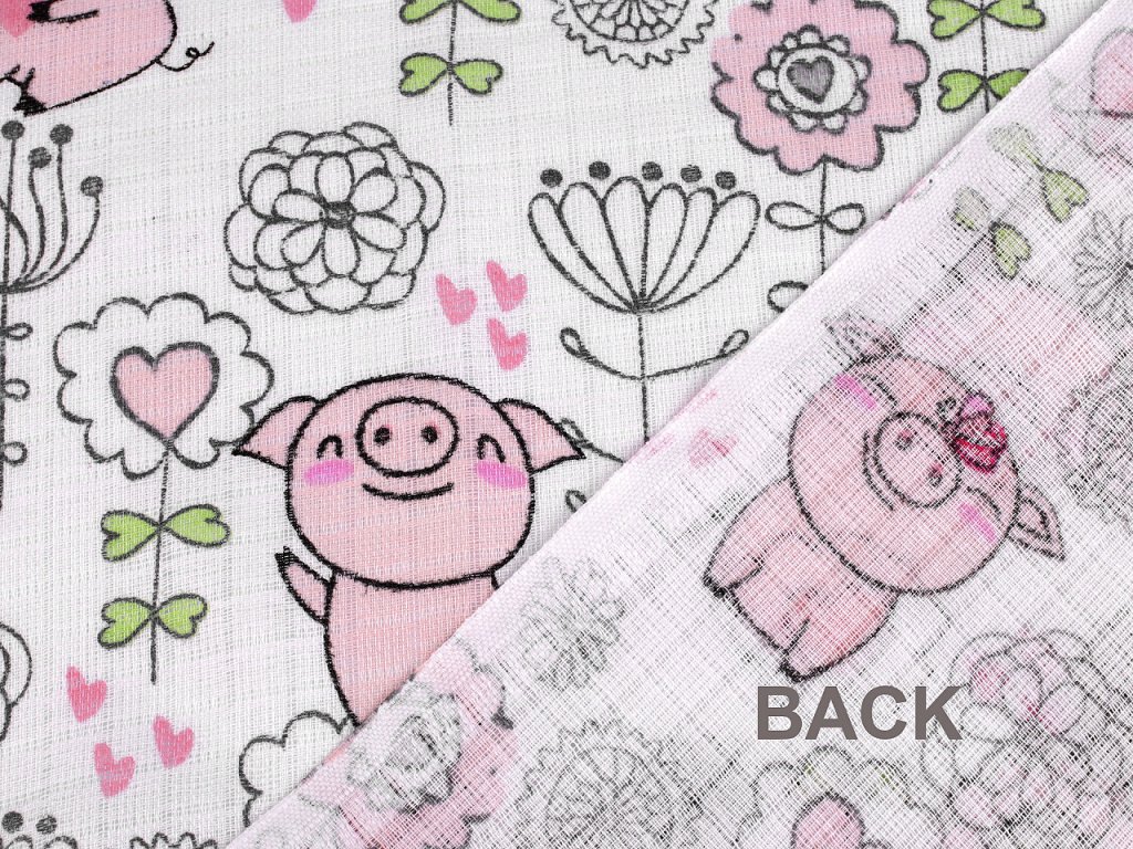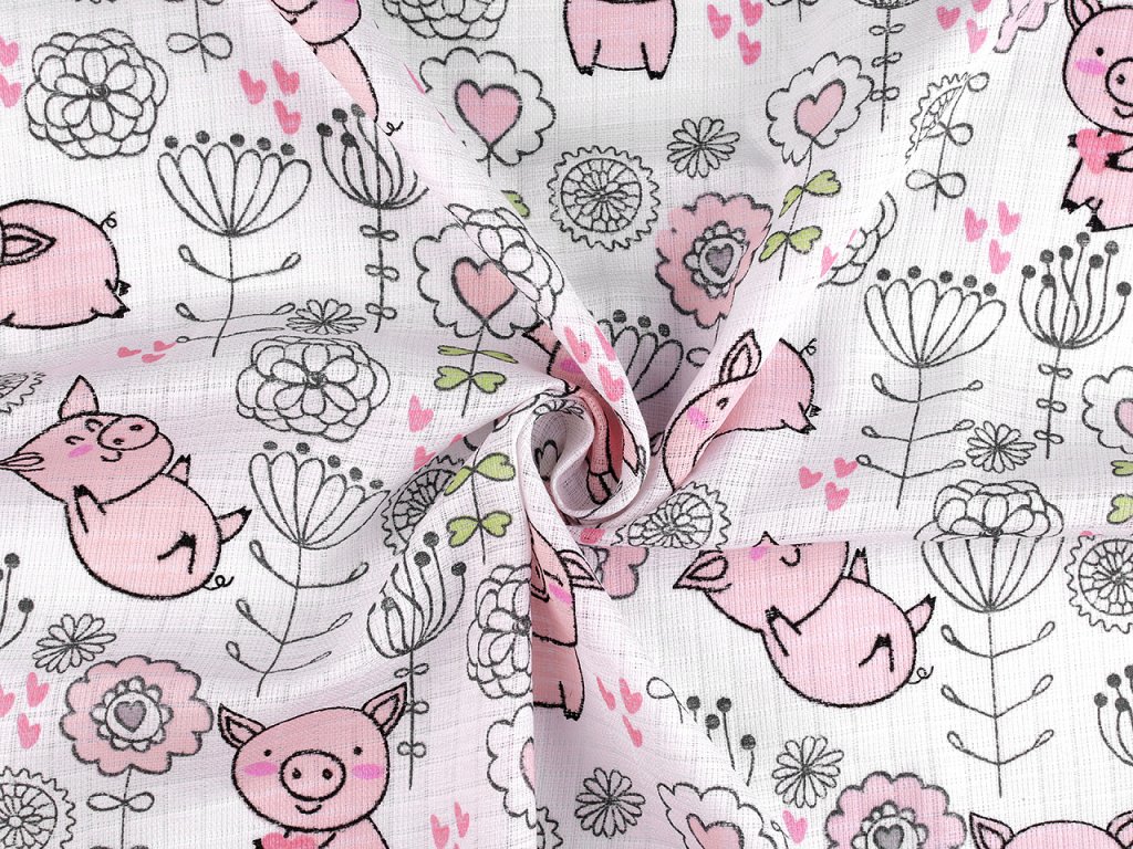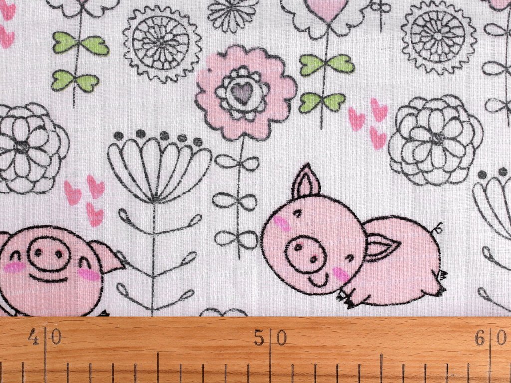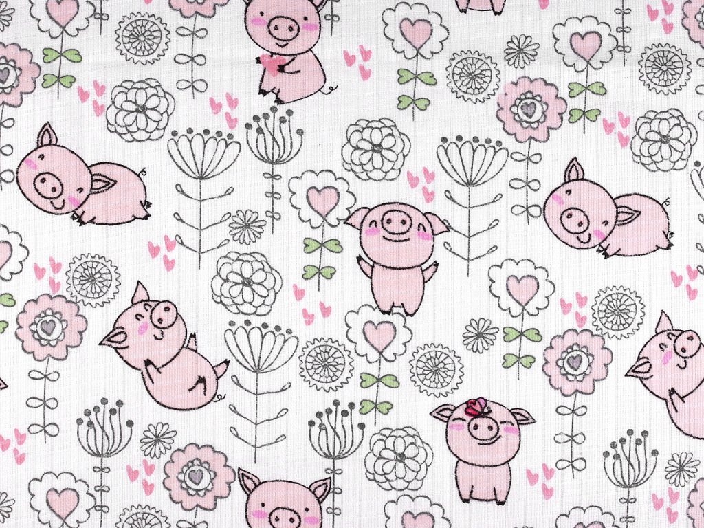 Bavlněnou plenkovinu s potiskem prasátek využijete na šití plenek, baldachýnů, bryndáčků apod. Je vzdušná a příjemná na dotek.