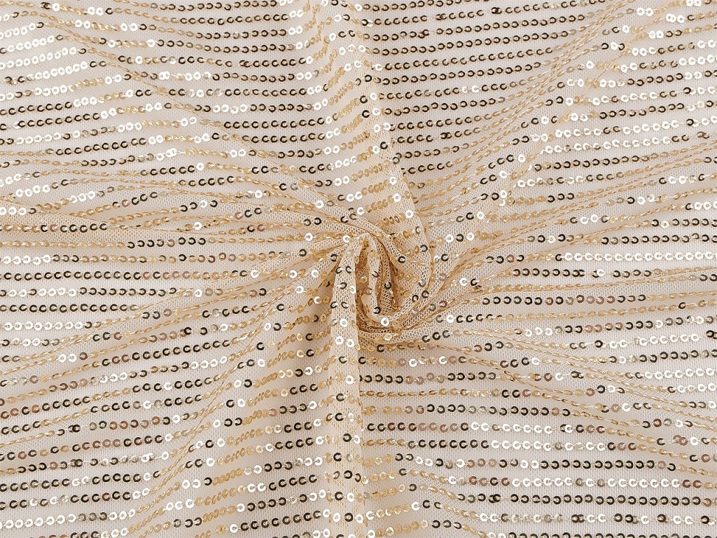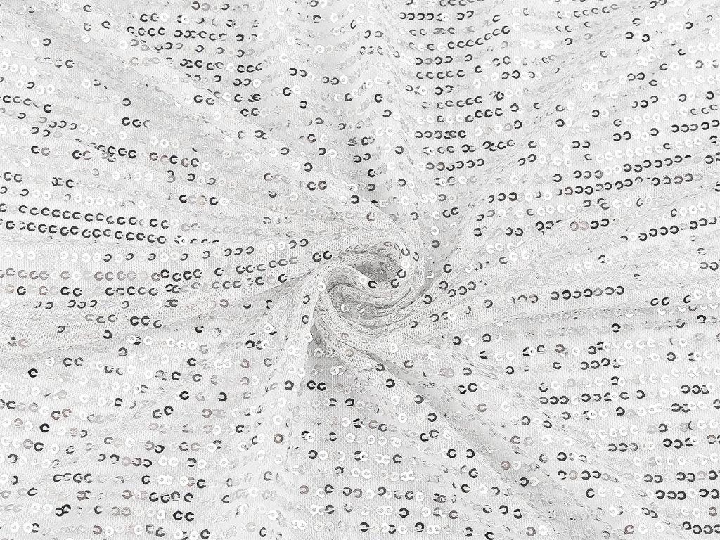 Jemný úplet je bohatě pošitý drobnými třpytivými flitry, které mu dodávají úchvatný vzhled. Ušijete z něj luxusní plesové šaty, taneční kostýmy, saka, bolerka i doplňky jako jsou třeba psaníčka.