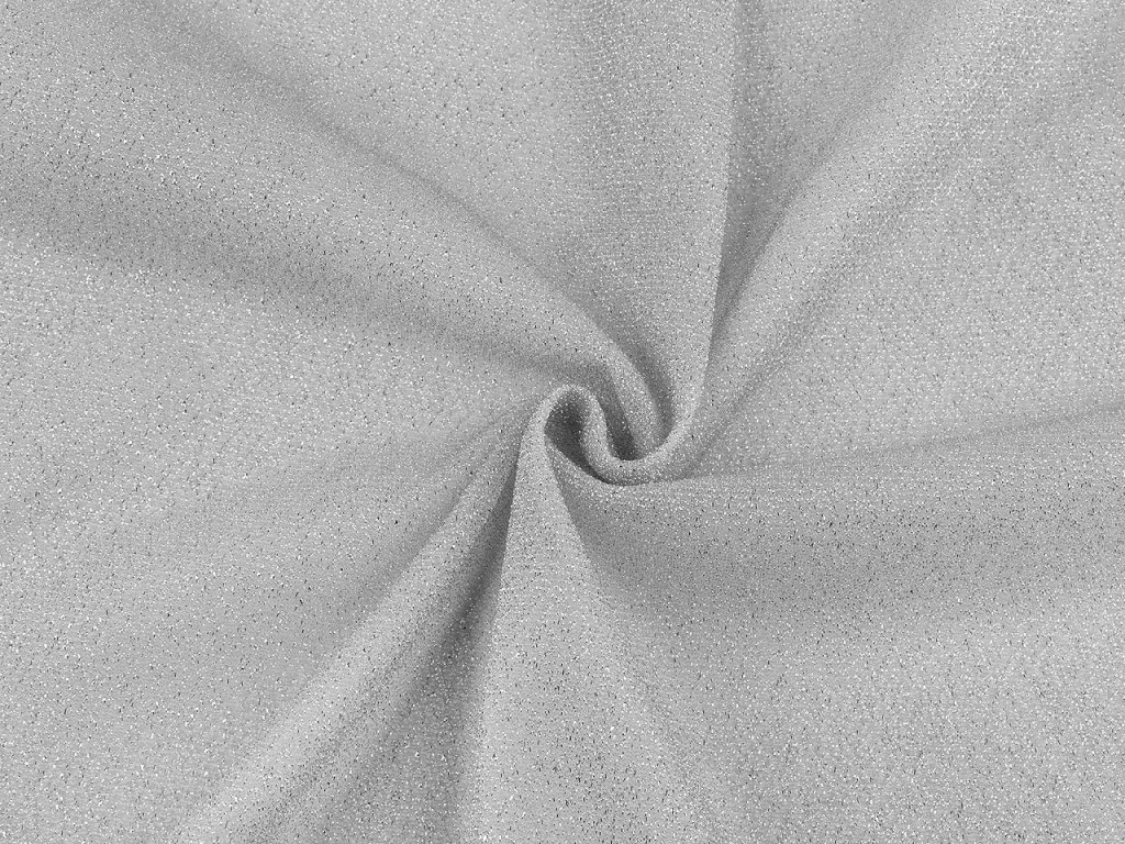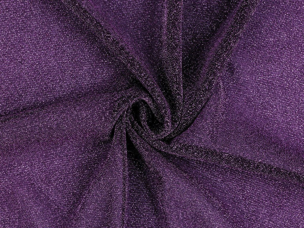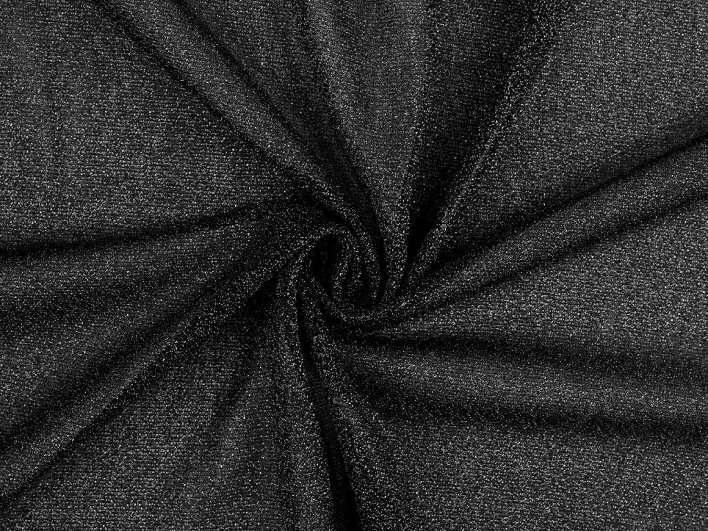 Třpytivý úplet je protkaný lurexem, který mu dodává slavnostní vzhled. Je splývavý, lehký, z rubové strany hladký a pruží víc do šířky než do délky. Lehce prosvítá. Využijete ho na šití karnevalových kostýmů, plesových šatů, halenek i k aranžování (Vánoce, plesy, oslavy apod).