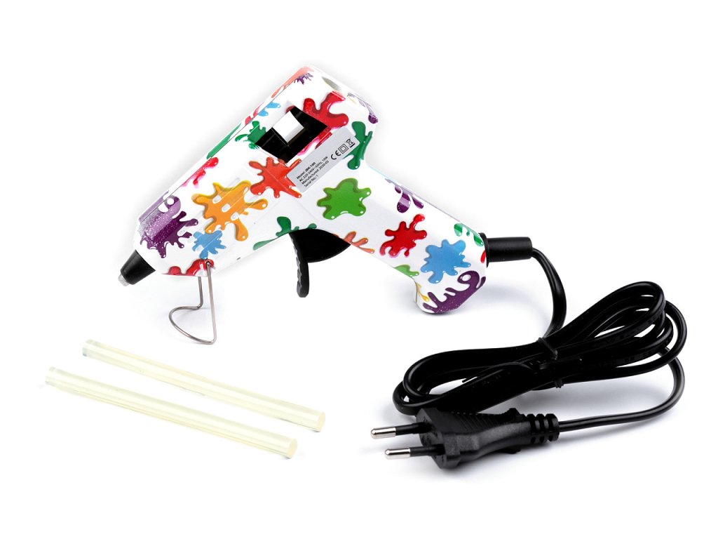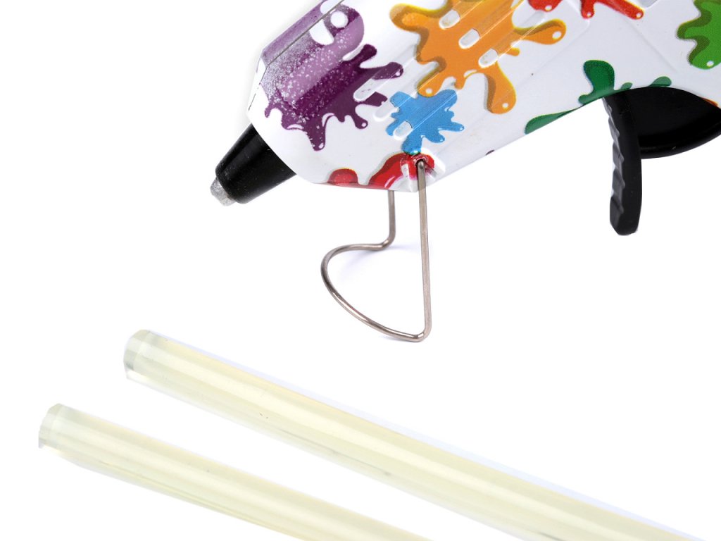 Pistole se zapojuje do elektřiny. Při práci zacházejte s pistolí opatrně, její tryska je horká. Rozehřátou pistoli odkládejte na stojánek, který je v přední části pistole.
