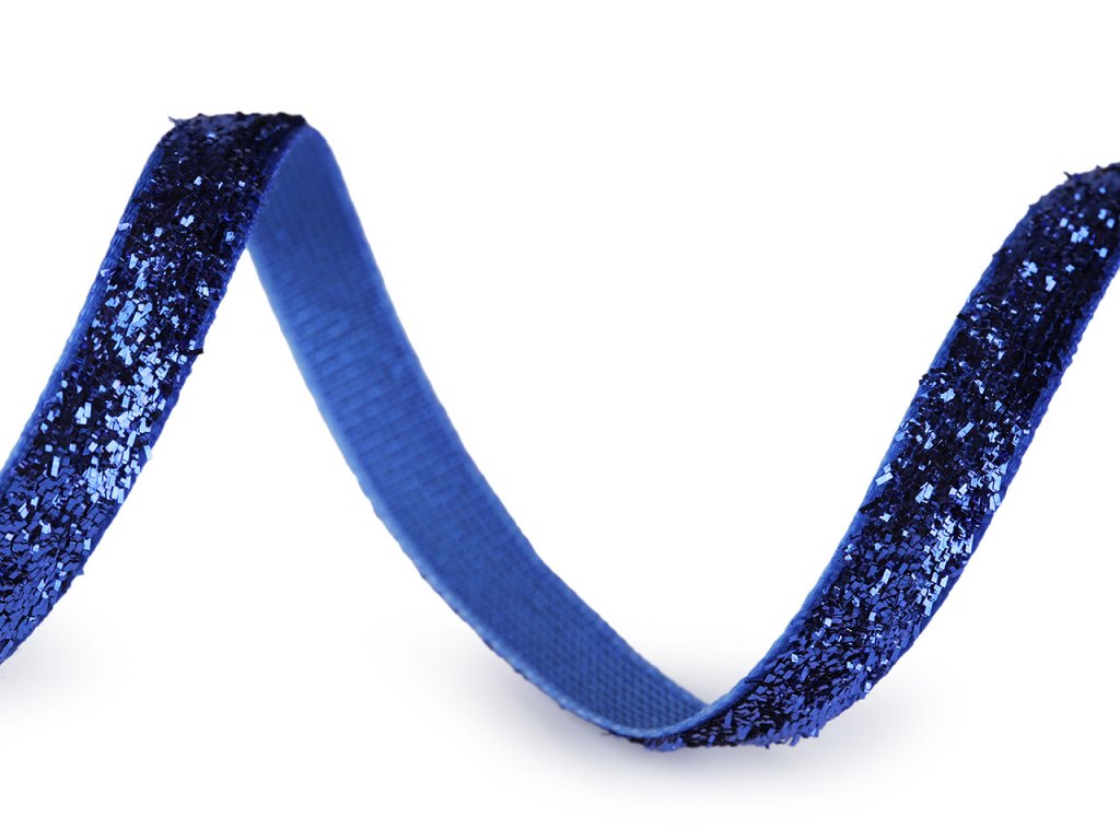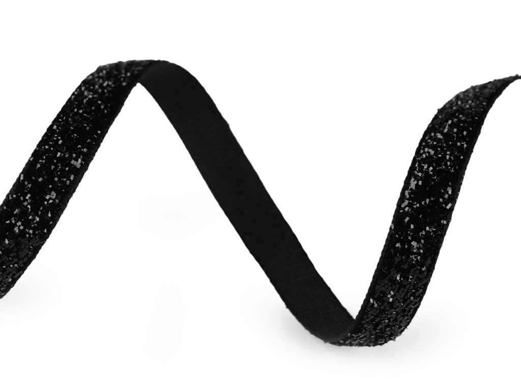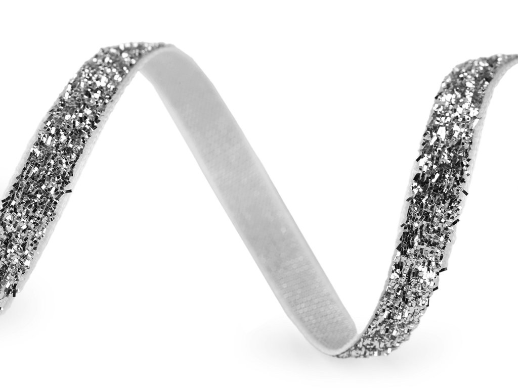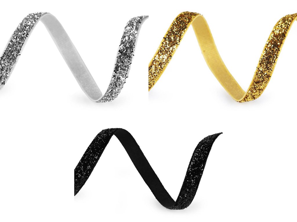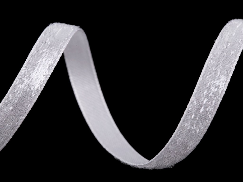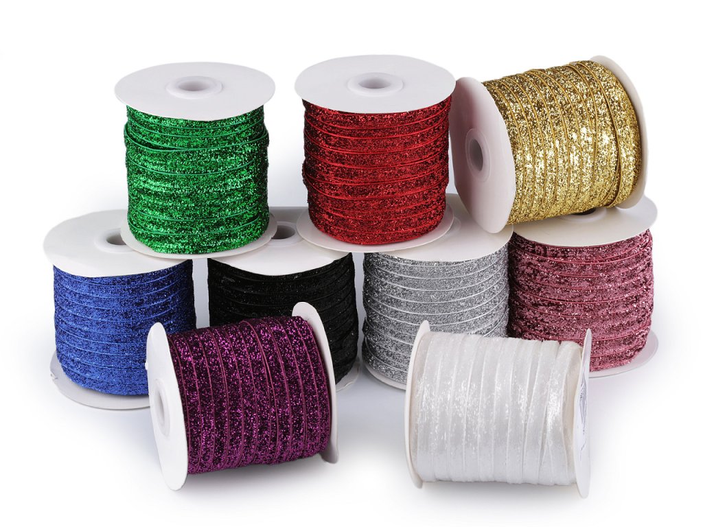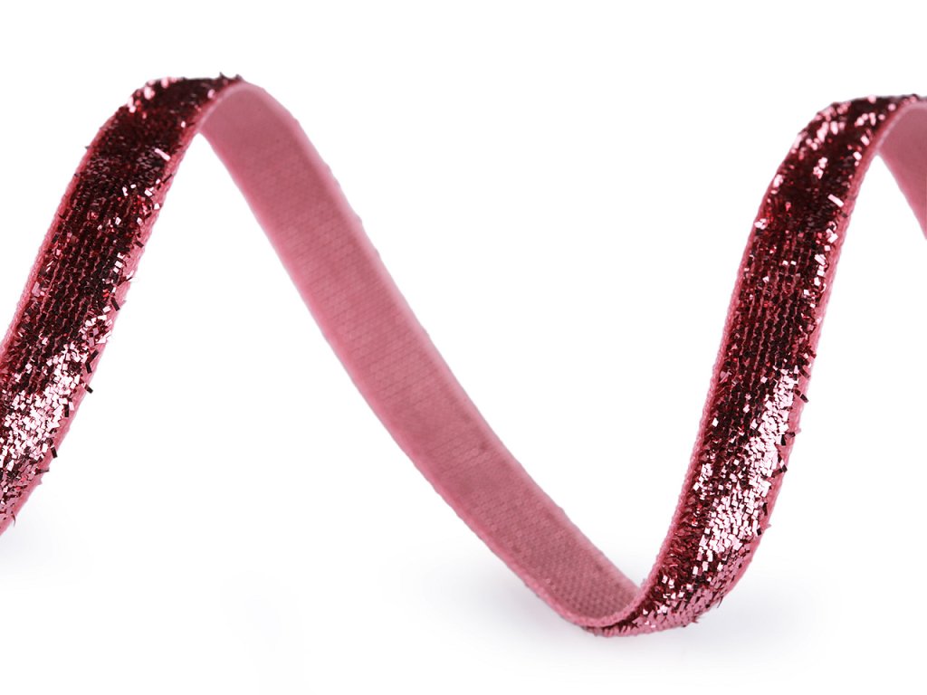 Třpytivá sametová stuha má horní stranu ozdobenou lurexem. Je velice pevná, kvalitní, jednostranná.