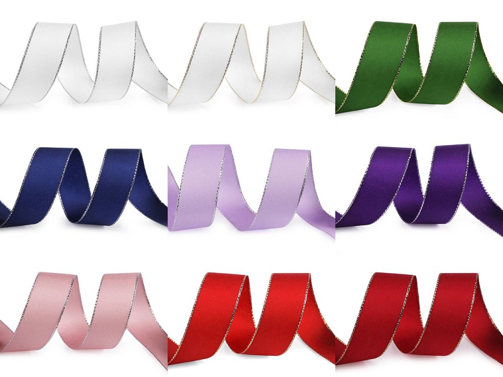 Taftová stuha s lurexem vás zaujme svým jemným elegantním třpytem. Lurex je po stranách, stuha je ideální pro zdobení dárkových balení, tvorbu ozdob na sváteční stůl, svatební dekorace či různé kreativní projekty.