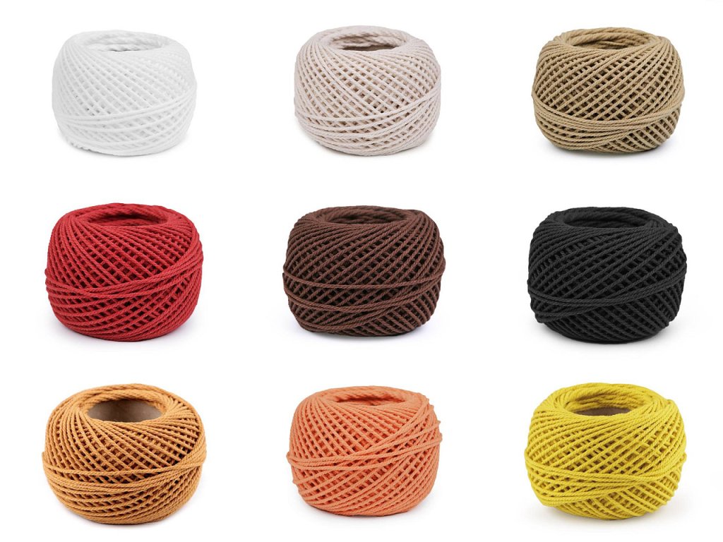 Bavlněná příze připomíná provázek. Je vhodná na háčkování tašek, síťovek, klobouků a různých dekorací. [Využijete ji také u oblíbené techniky macrame.]