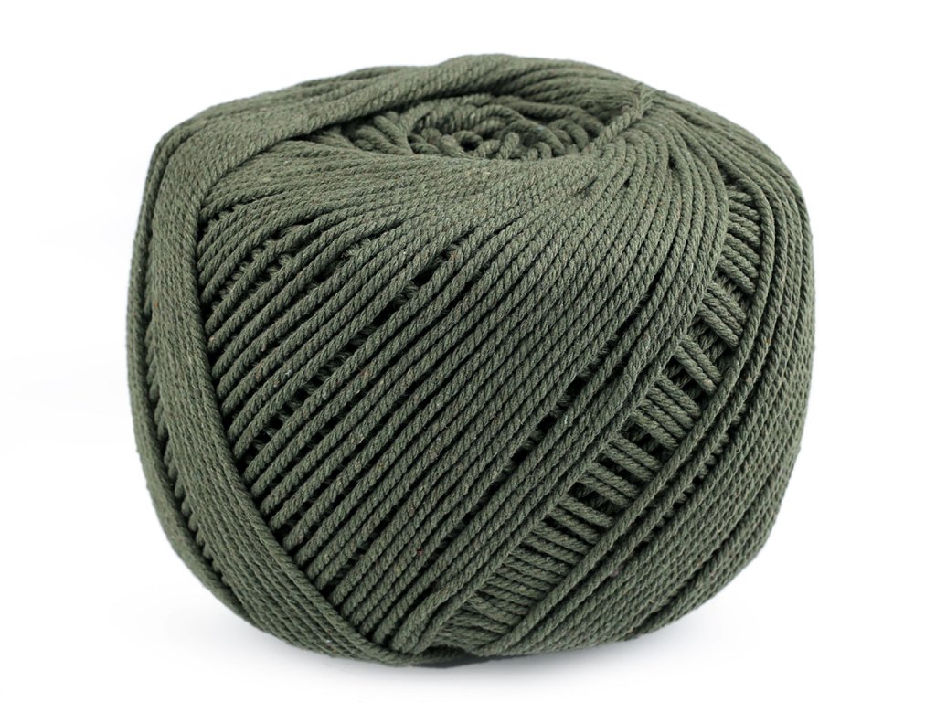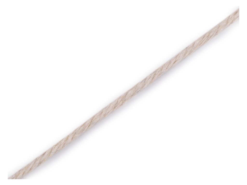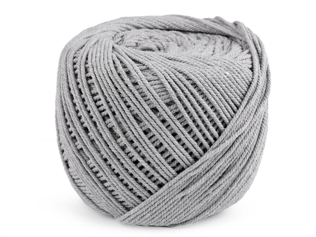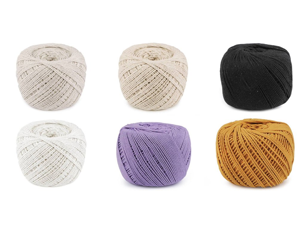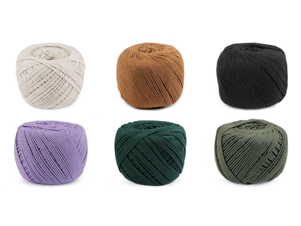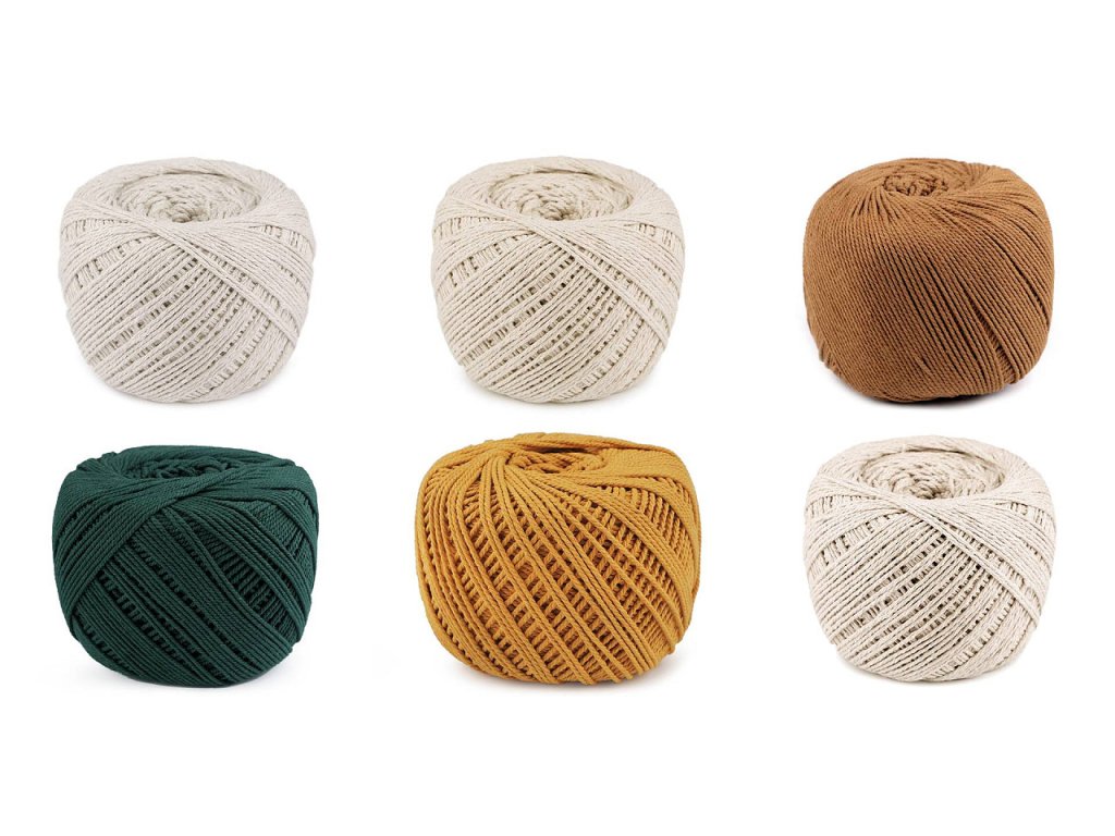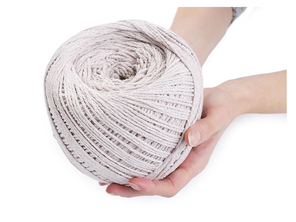 Splétaná šňůra je pevná, spletená z 9 tenčích nití. Využijete ji na výrobu drhaných (macrame) výrobků i na háčkování tašek, košíků a různých dekorací.