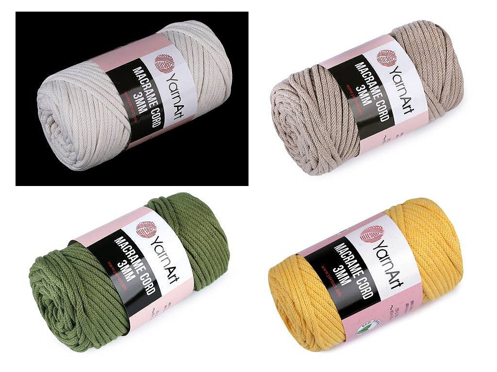 Příze Macrame Cord připomíná provázek. Využijete ji na pletení nebo háčkování pufů, košíků, koberečků i tašek.