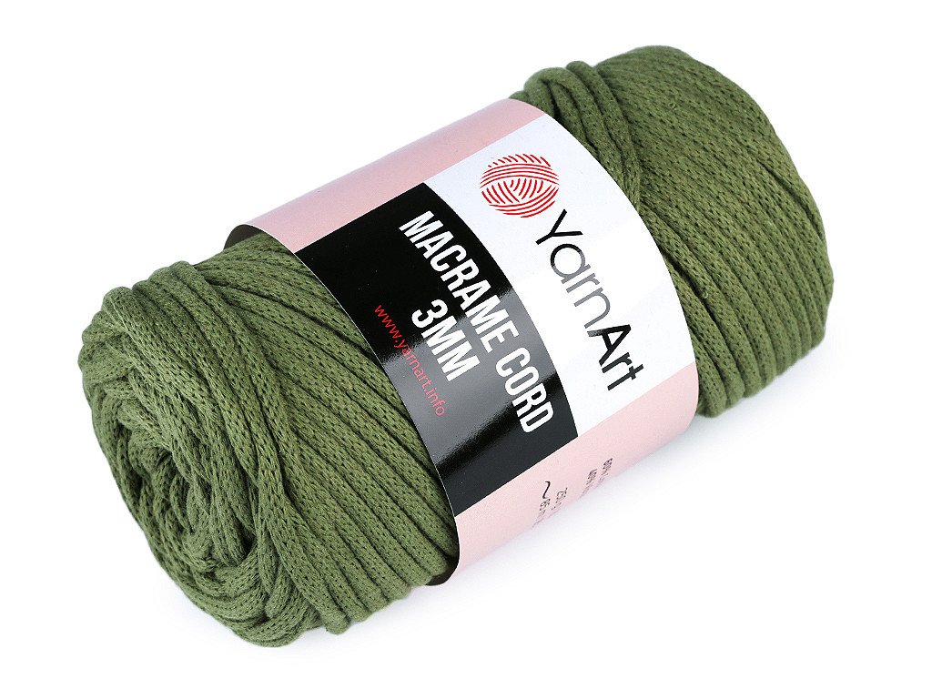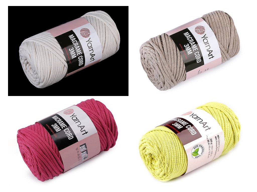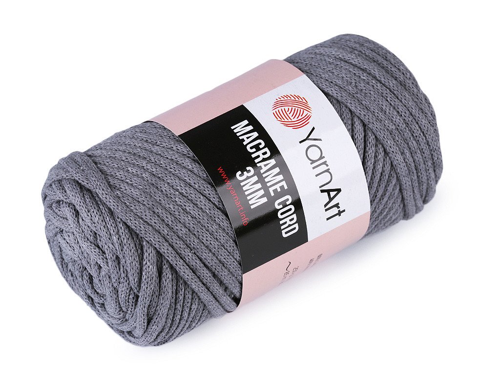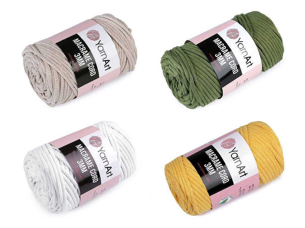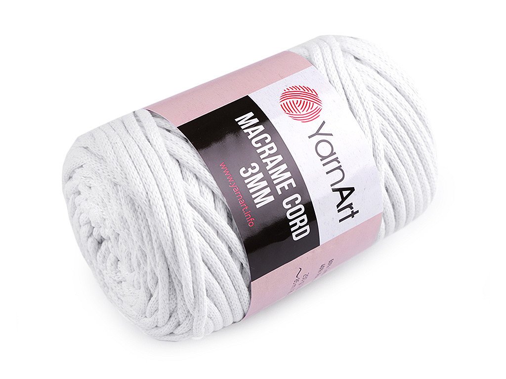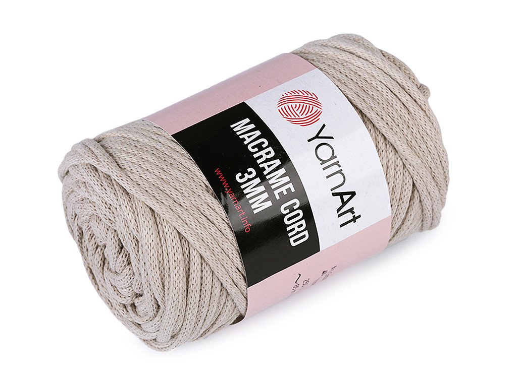 Příze Macrame Cord připomíná provázek. Využijete ji na pletení nebo háčkování pufů, košíků, koberečků i tašek.