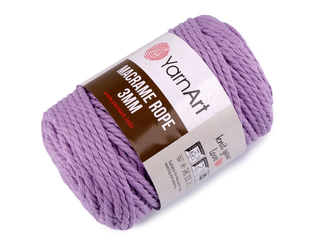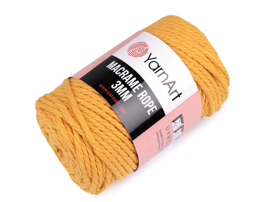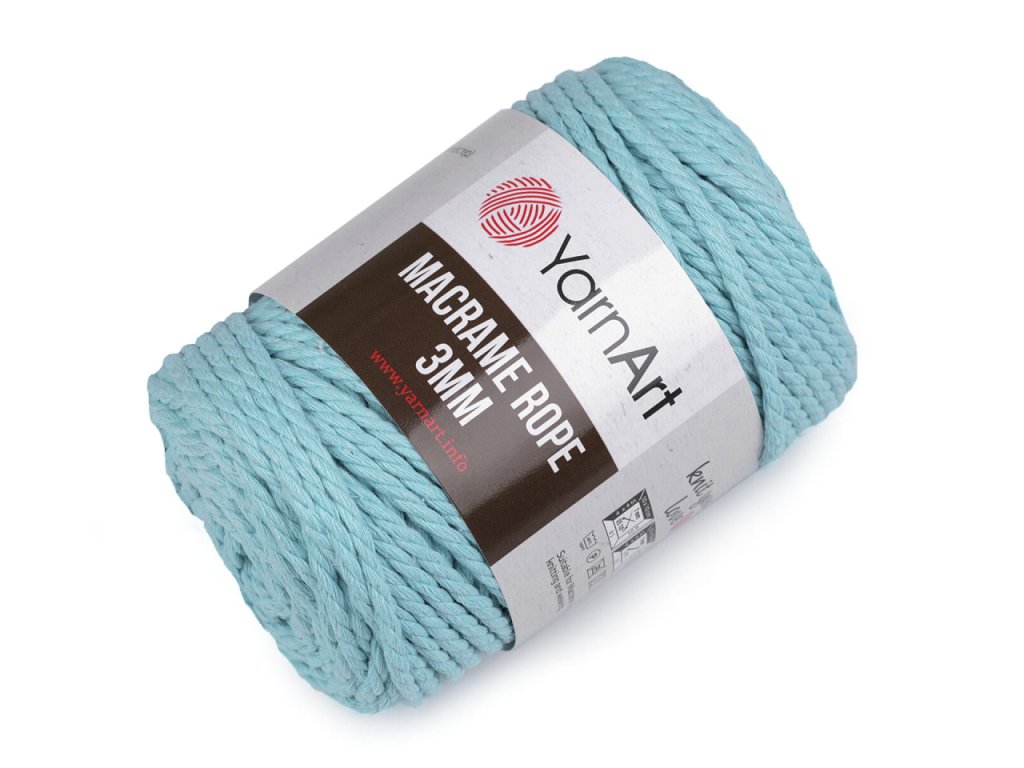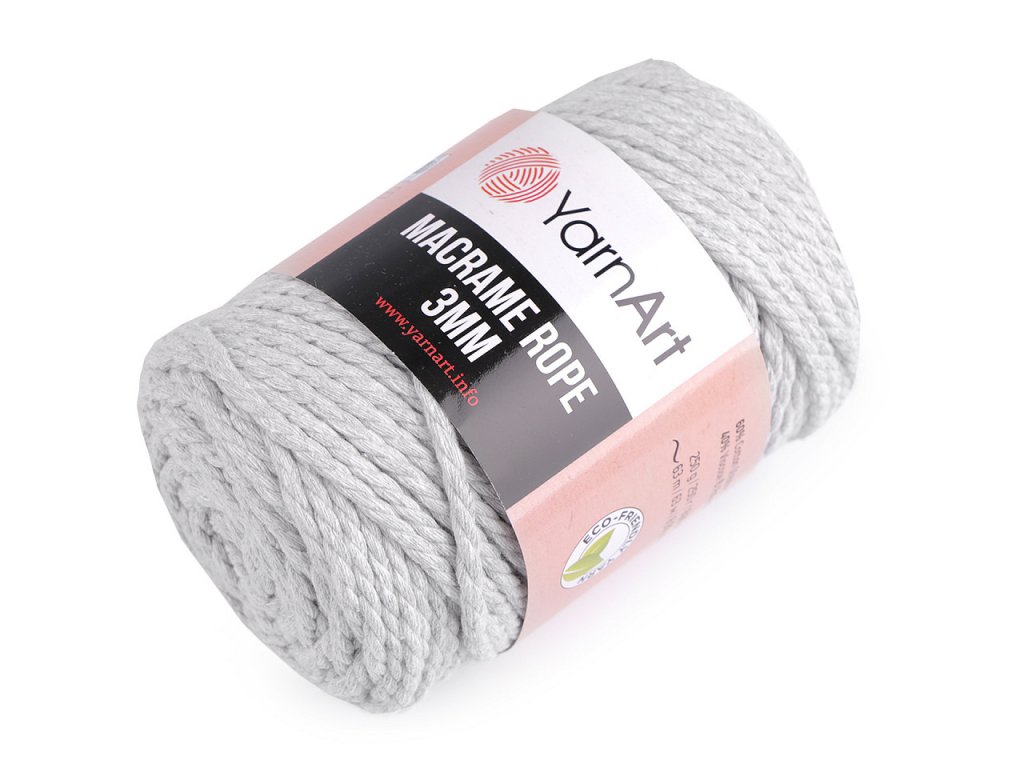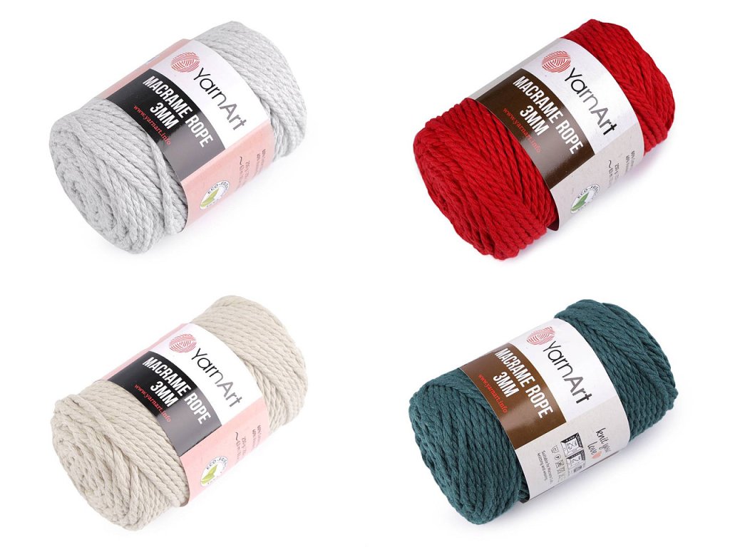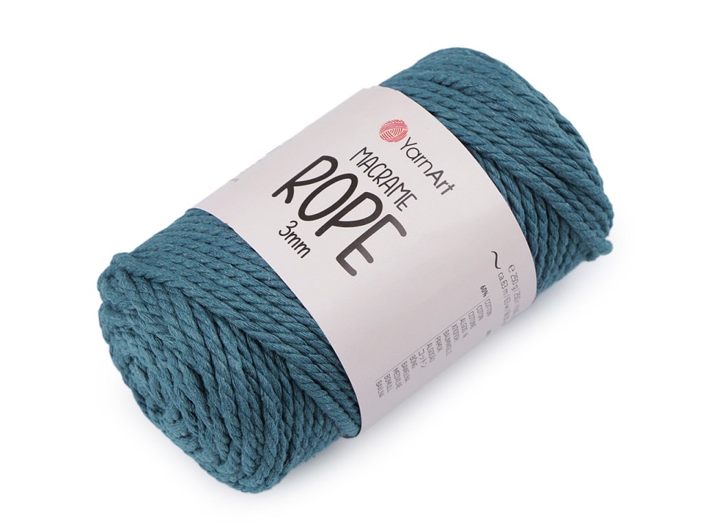 Příze Macrame rope je kroucená a připomíná provázek. Využijete ji na pletení nebo háčkování pufů, košíků, koberečků i tašek. Díky svému zpracování je vhodná také na výrobu macramé dekorací.