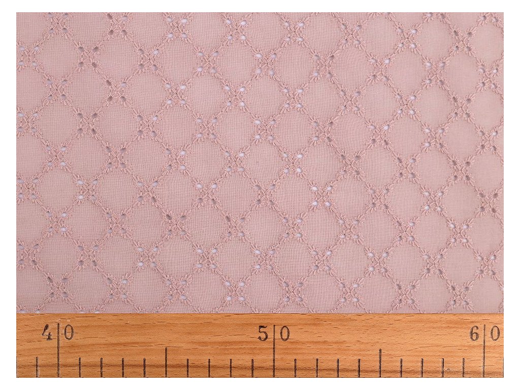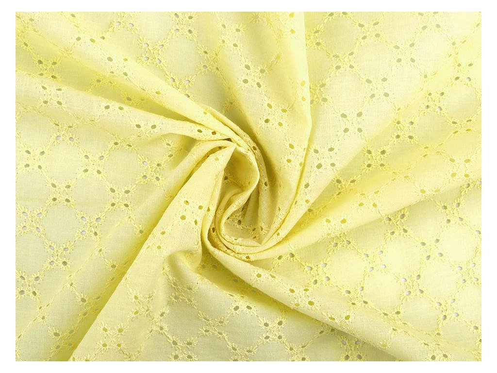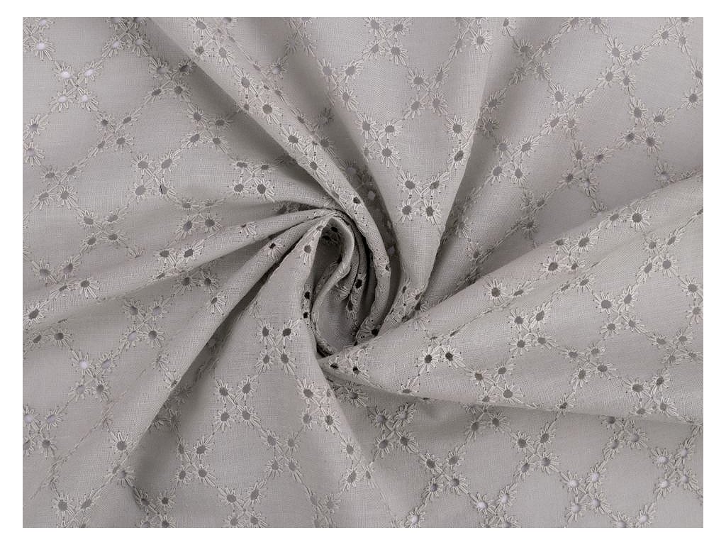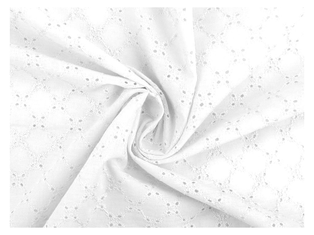 Bavlněnou madeiru zdobí dírkovaná výšivka s květy. Látka je jemně průsvitná, lehká a vzdušná. Madeira je vhodná na šití letních šatů, halenek, sukní, dívčích šatiček apod. Využijete ji i na ušití dekorací - polštářů, ubrusů, záclonek, závěsů apod.