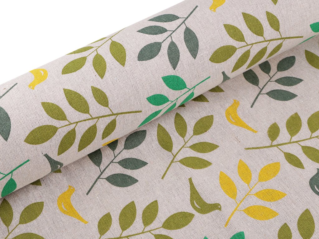 Dekorační metráž / imitace lnu / polybavlna, listy