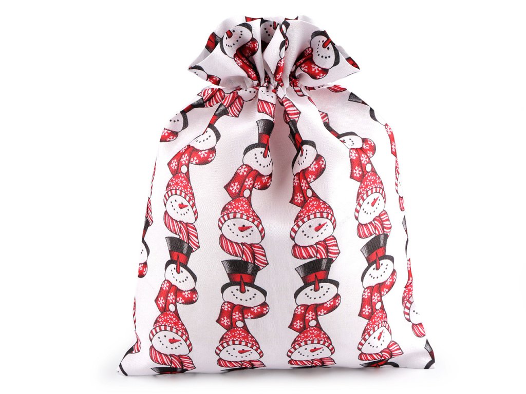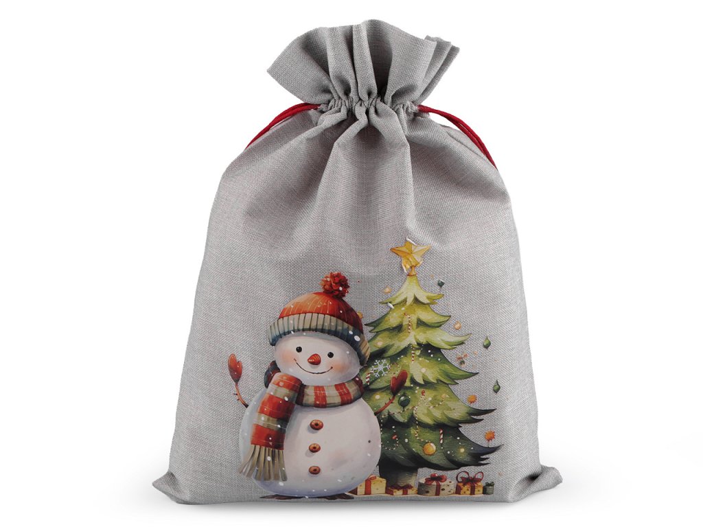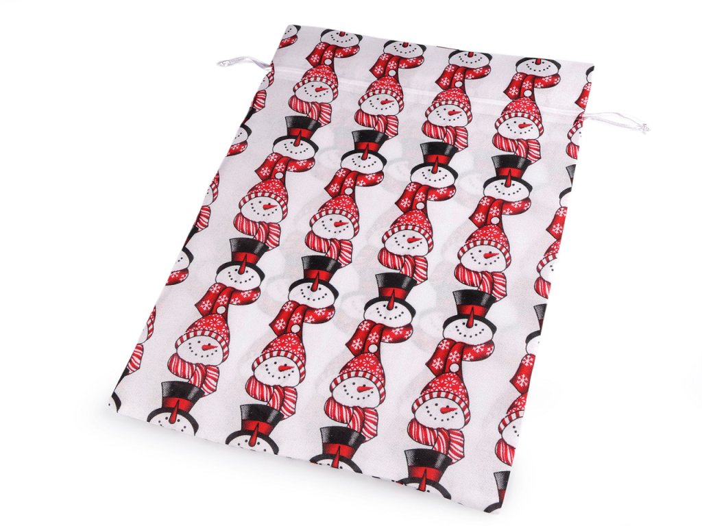 Dárkový pytlík s motivy sněhuláků je skvělý na rychlé a efektní zabalení dárků. Uzavírá se pomocí stahovacích šňůrek. Hodí se i k tematickému vánočnímu aranžování a dekorování.