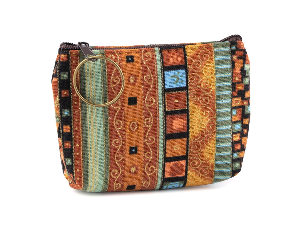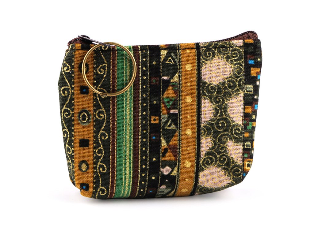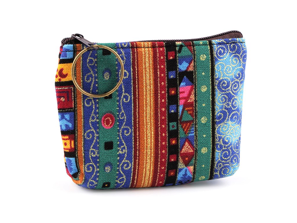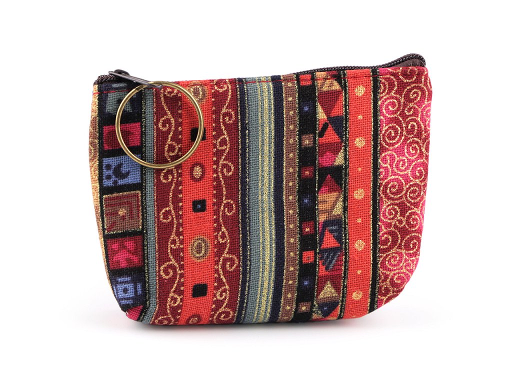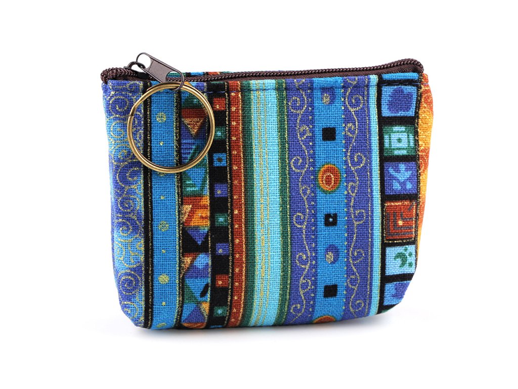 Peněženka s proužky a zlatými ornamenty snadno zorganizuje vaše drobné předměty v kabelce. Je praktickým pomocníkem i na cestách a výletech, je opatřená praktickým kroužkem na klíče. Děti ji rády používají i na své malé poklady, větší slečny si do ní mohou uložit menší kosmetické potřeby.