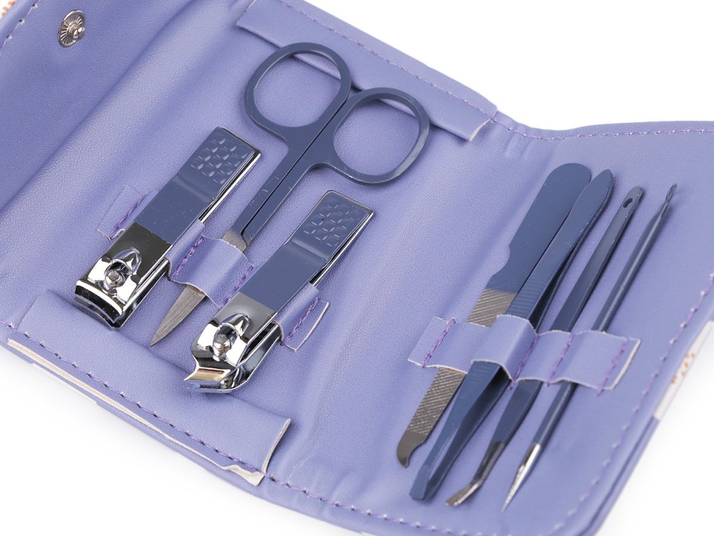 Manikúra obsahuje: nehtové nůžky, pilník, pinzetu, 2 manikúrové nástroje a 2 kusy nehtových kleští.